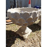 PINEAPPLE STYLE GARDEN PLANTER ON PEDESTAL BASE.