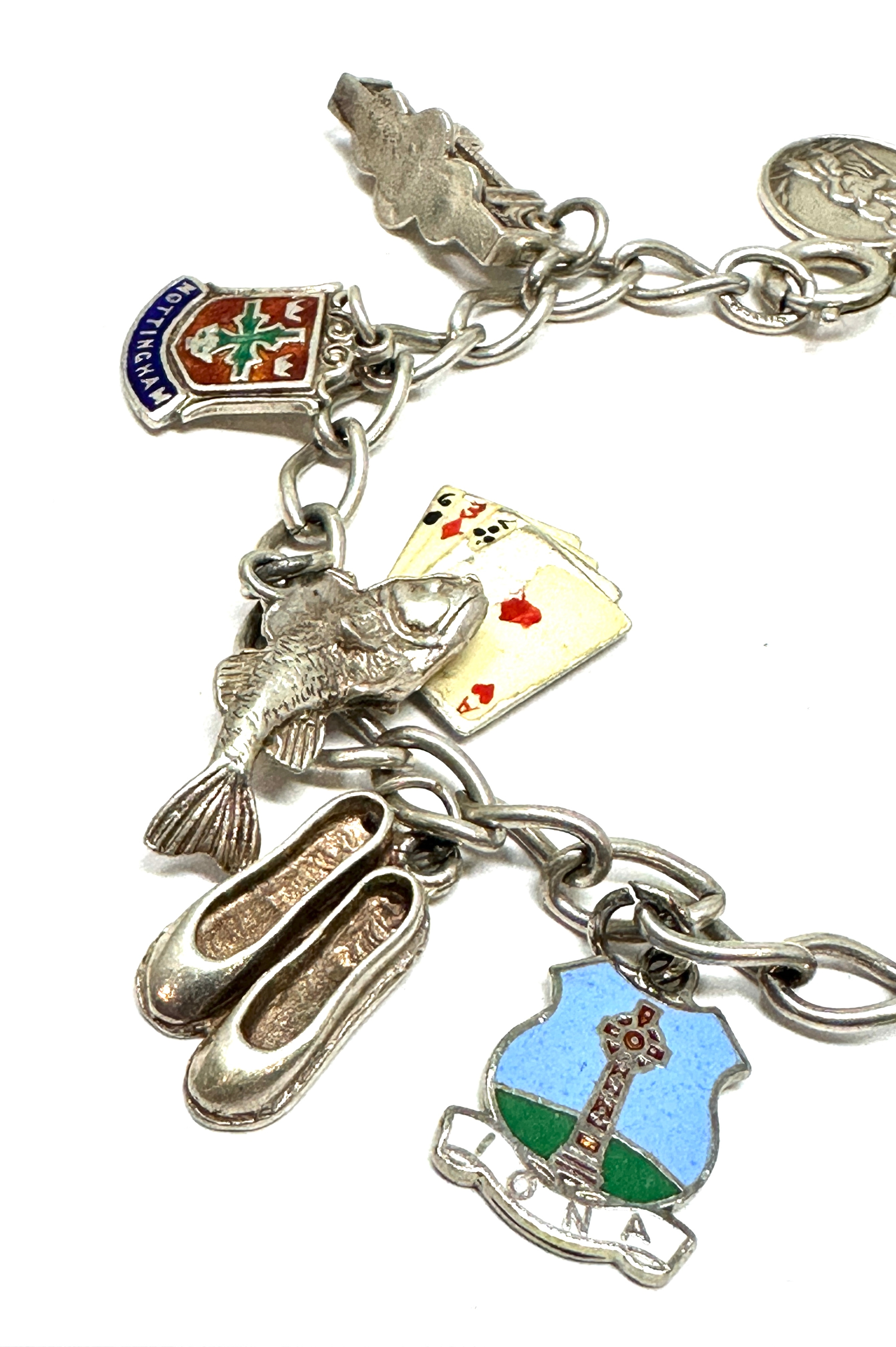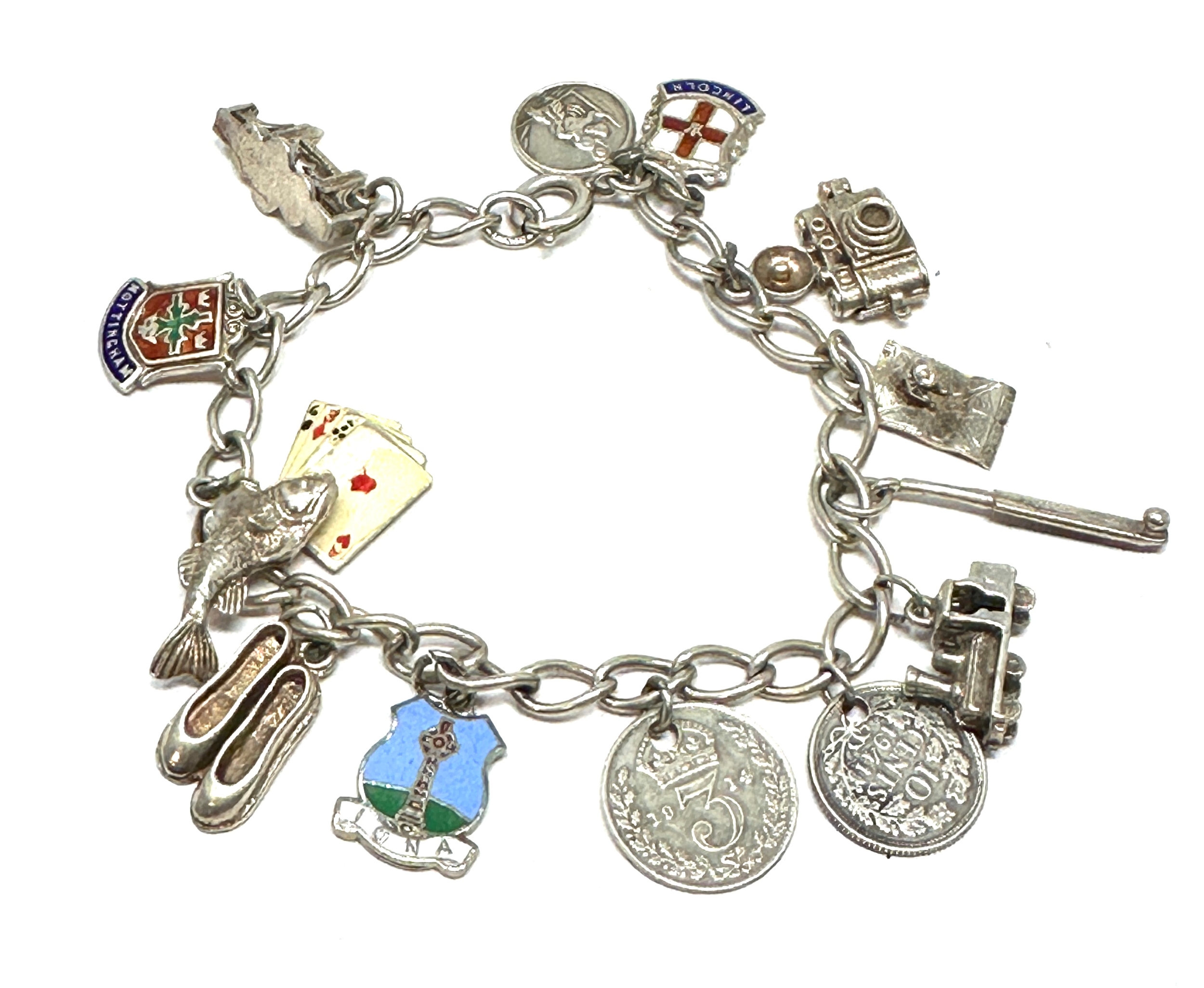 Vintage silver charm bracelet & charms weight 31g