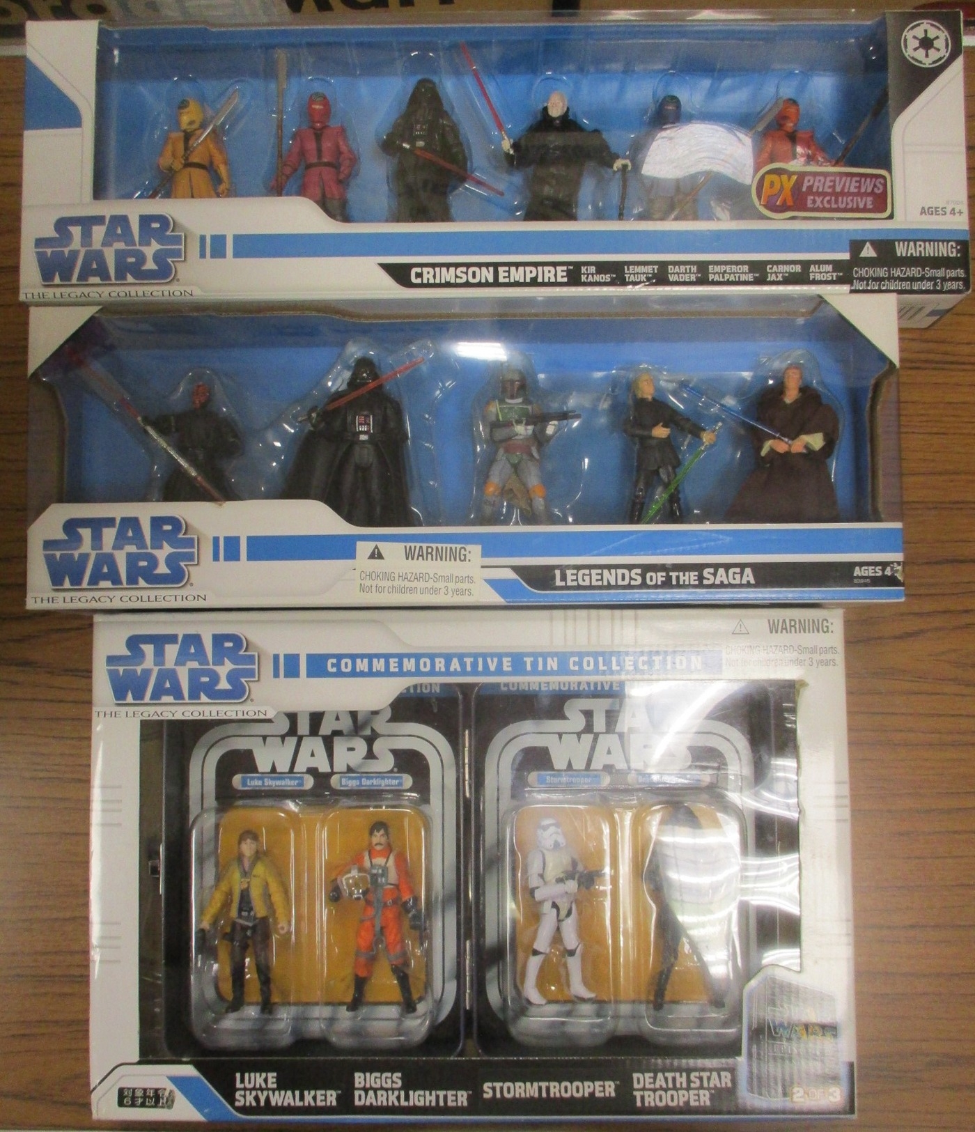Star Wars. Hasbro. Range of The Legacy Collection packs, generally mint in near mint boxes, with Crimson Empire, Legends of the Saga and A New Hope Commemorative Tin Collection. Qty 3 (B)