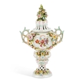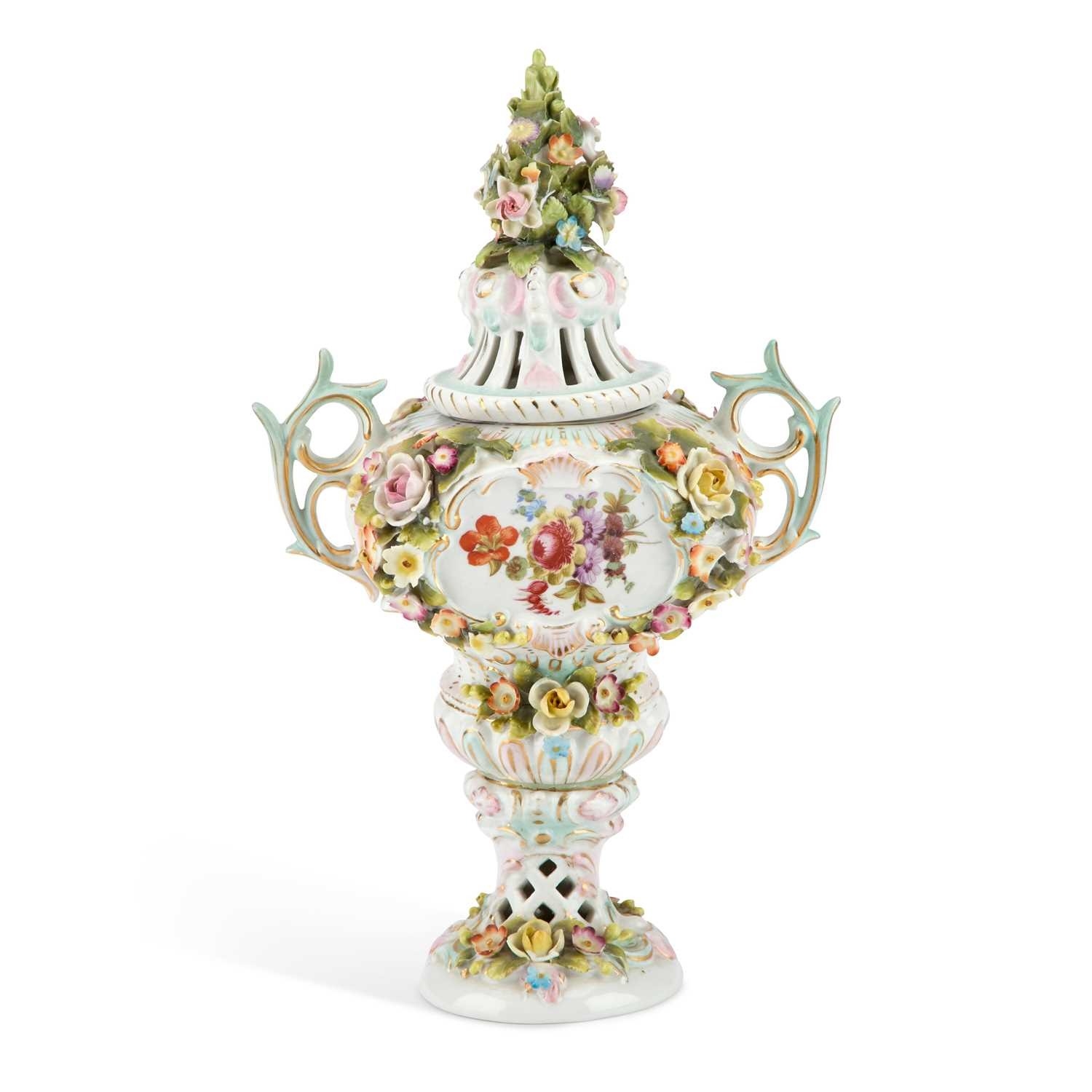 A SITZENDORF PORCELAIN FLORAL-ENCRUSTED VASE AND COVER