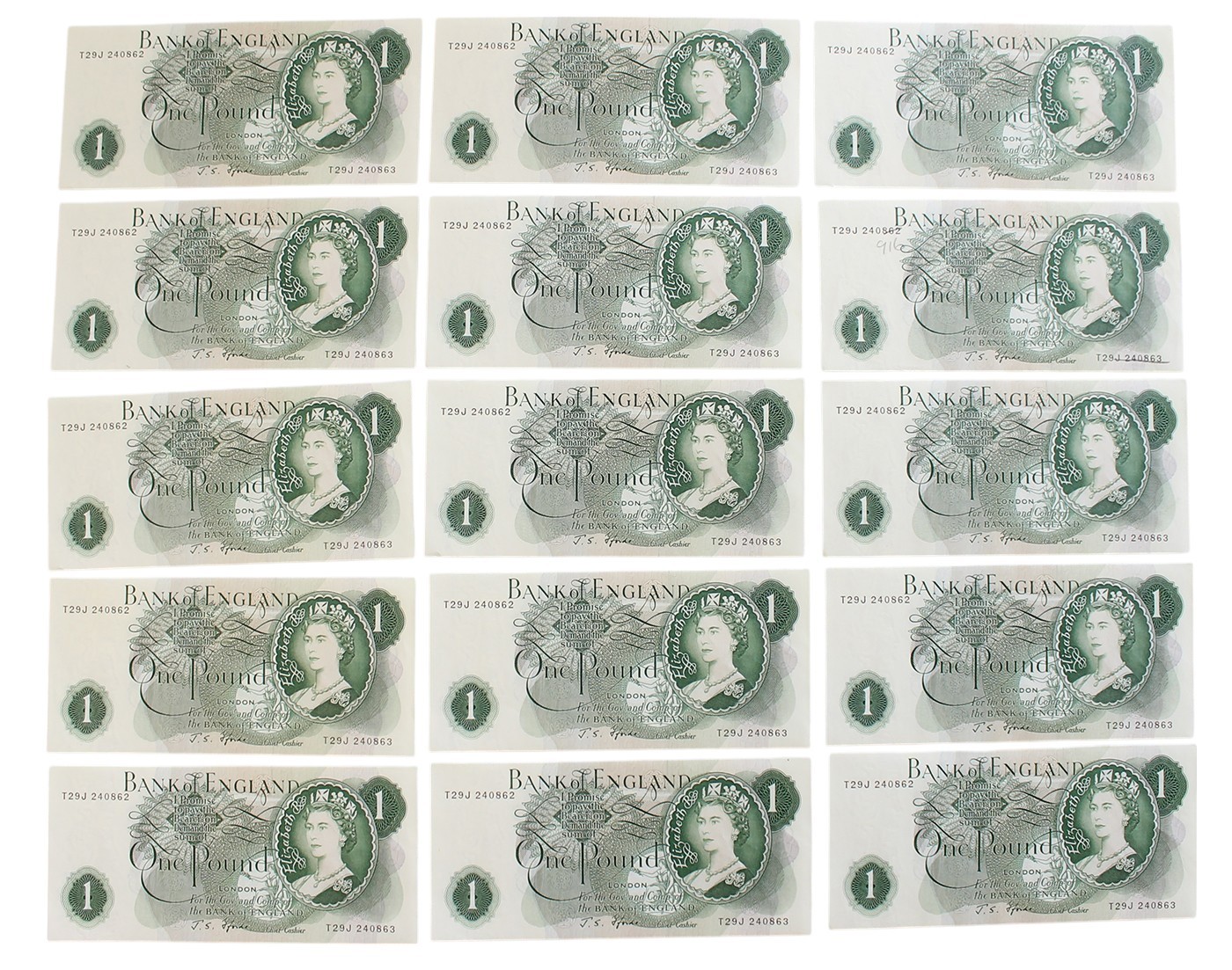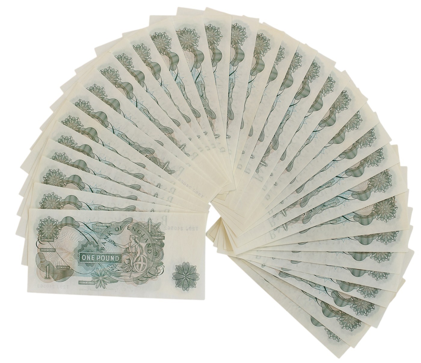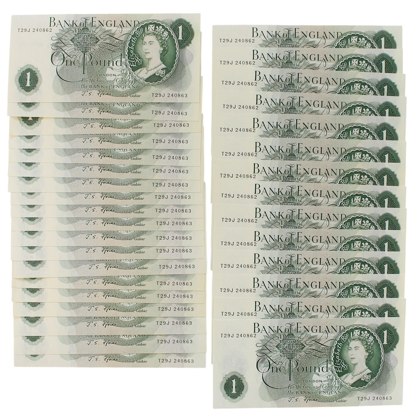 J.S. Fforde. Run of 48 identical £1 notes each numbered T29J 240862/T29J 240863 'slip and stick' error, good extremely fine, this error typically only appears on pairs of notes, we have never seen a 'slip and stick' set that encompasses such a large quantity of notes before, a potentially unique and highly desirable range. (BNYB E3h) (R)