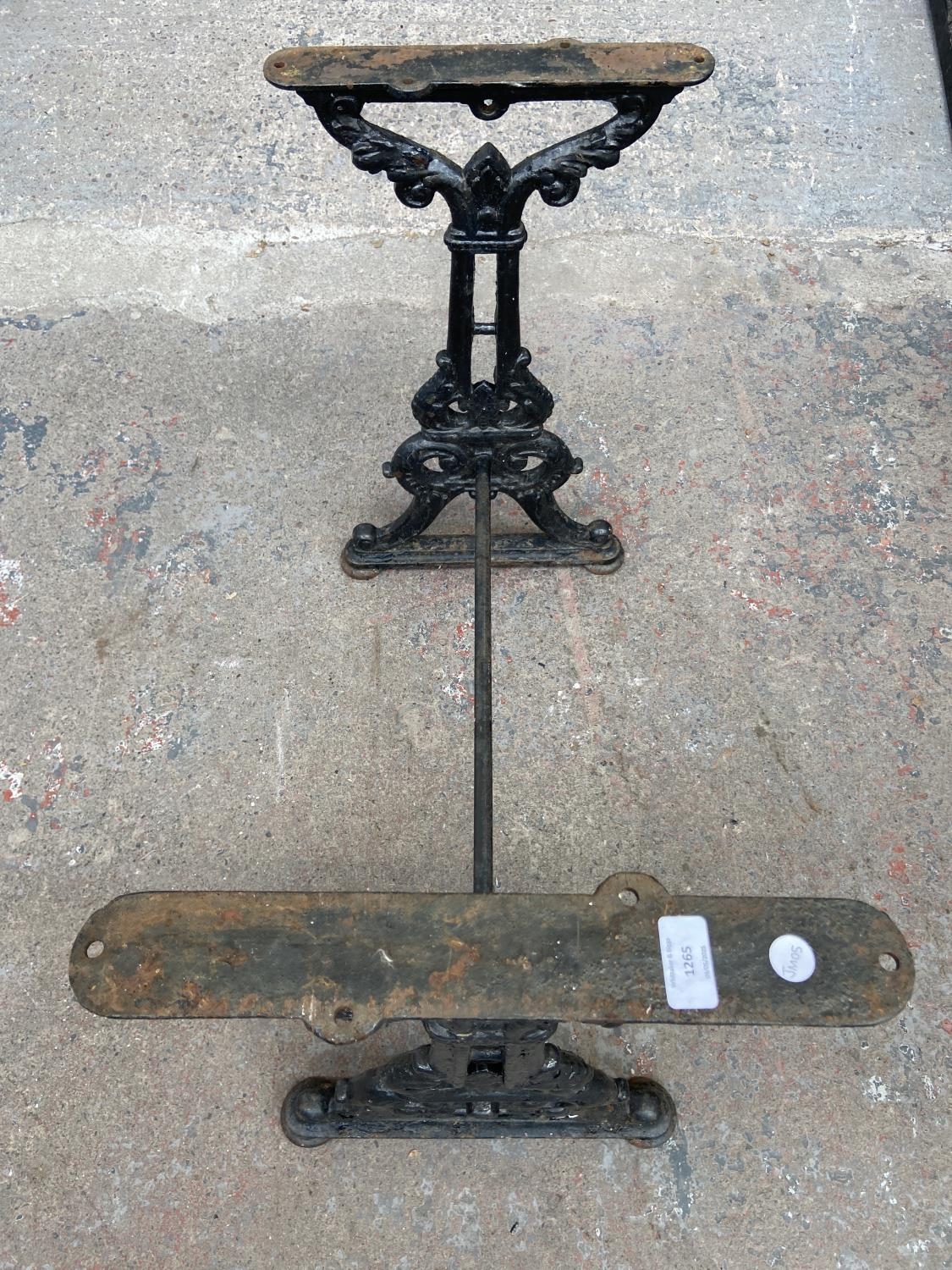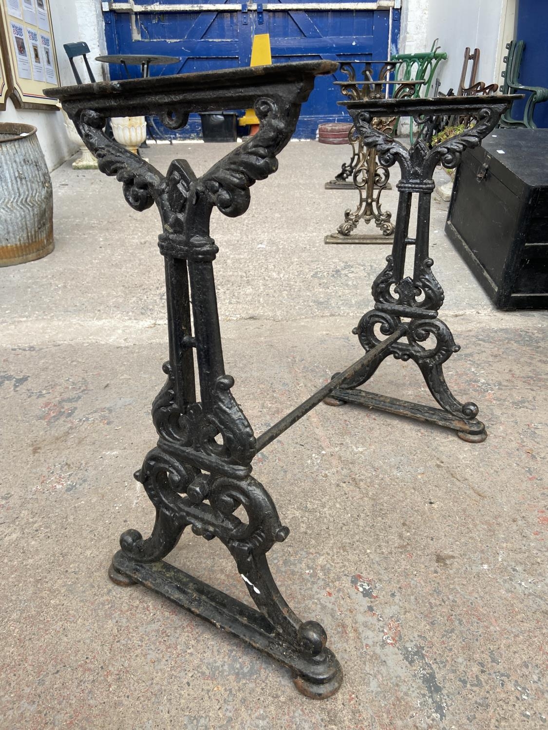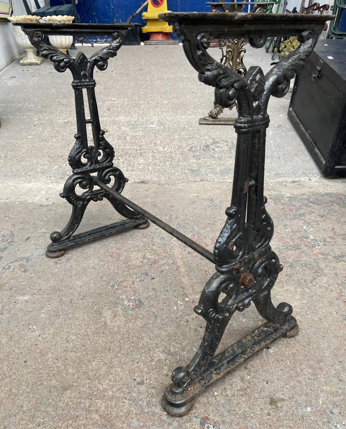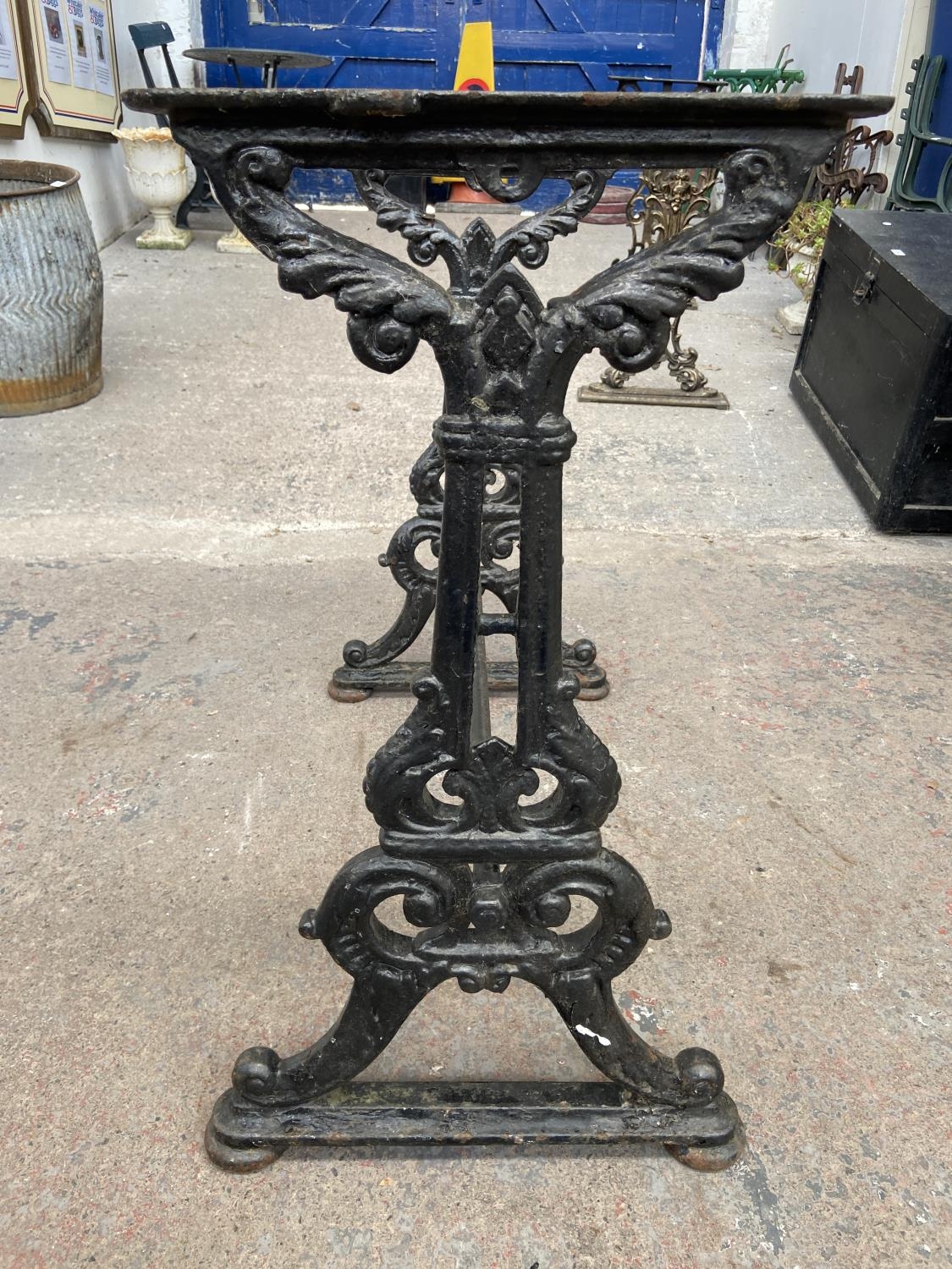 A Victorian black painted cast iron pub table base - approx. 74cm high x 42cm wide x 76cm long