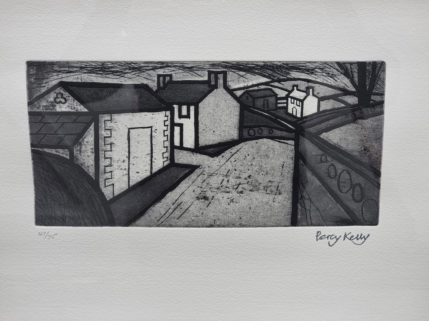 Percy Kelly, ‘Fell Farm', signed and further numbered 47/75 in pencil, etching, pl.13 x 27.5cm.