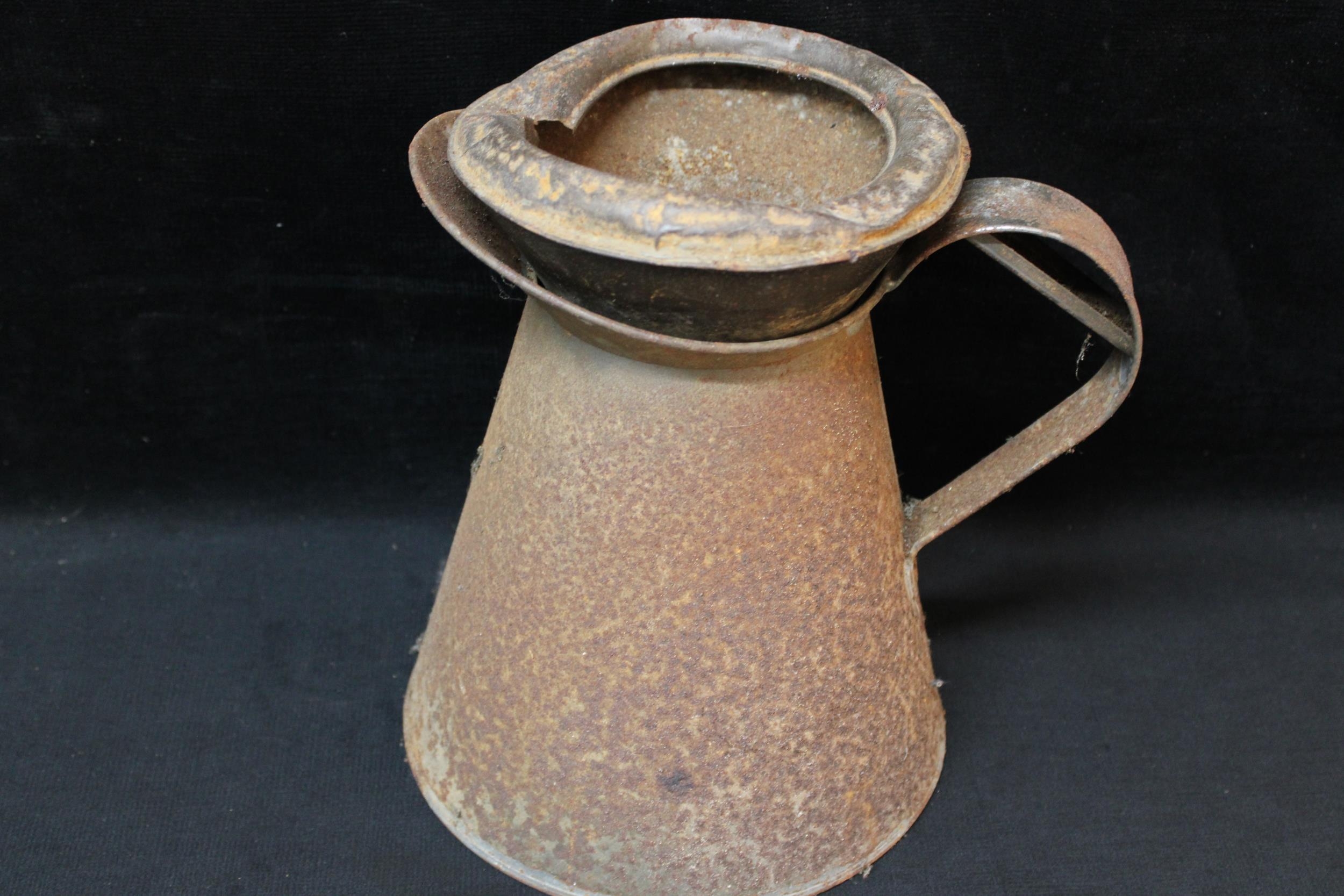 A vintage metal oil can and tundish - 26cmH