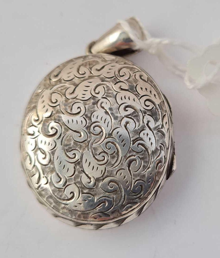 A antique Victorian hallmarked locket with scrolled decoration to front