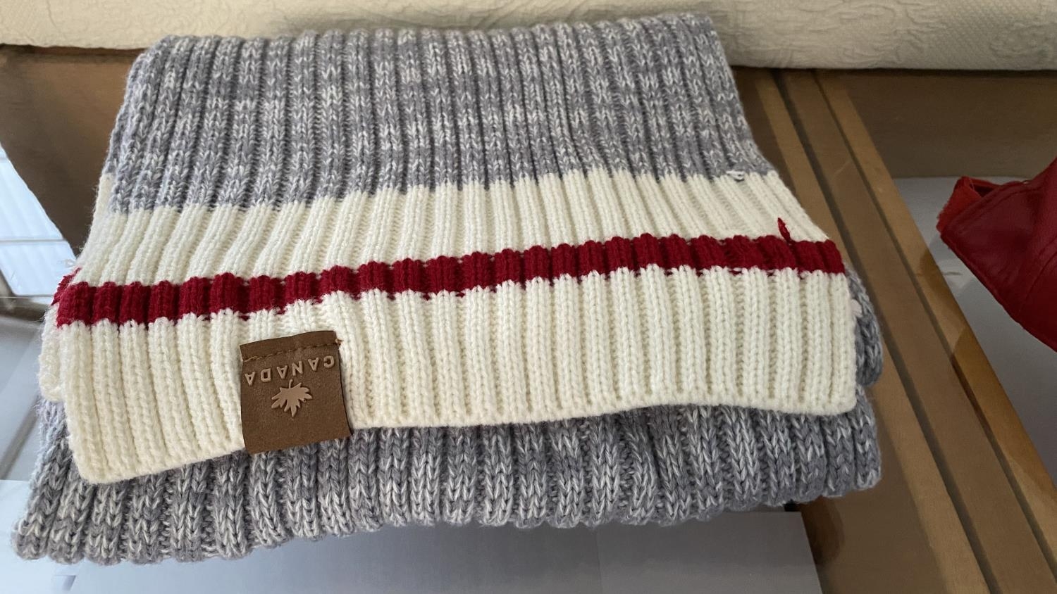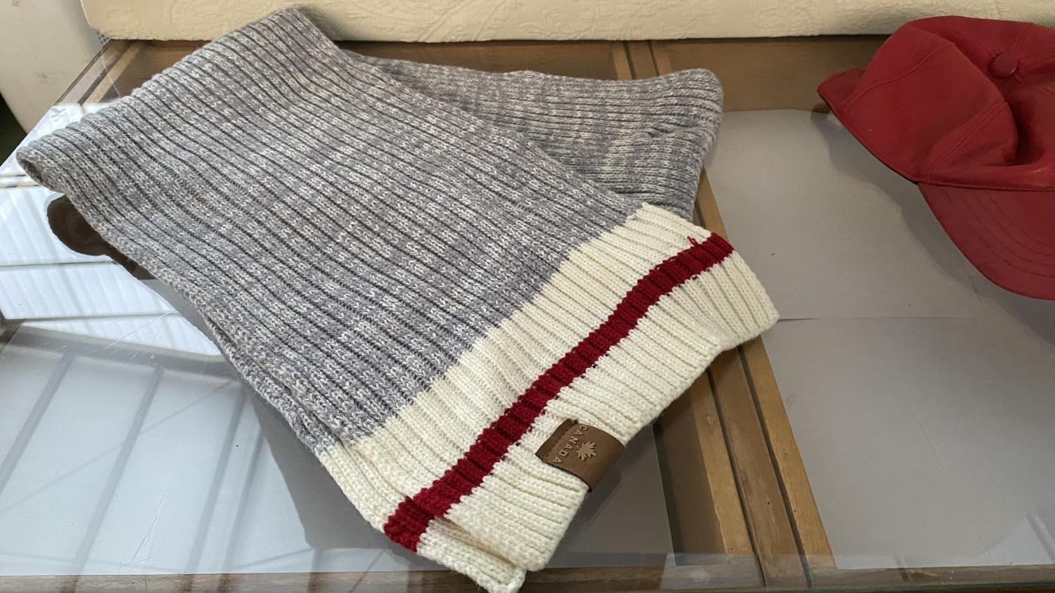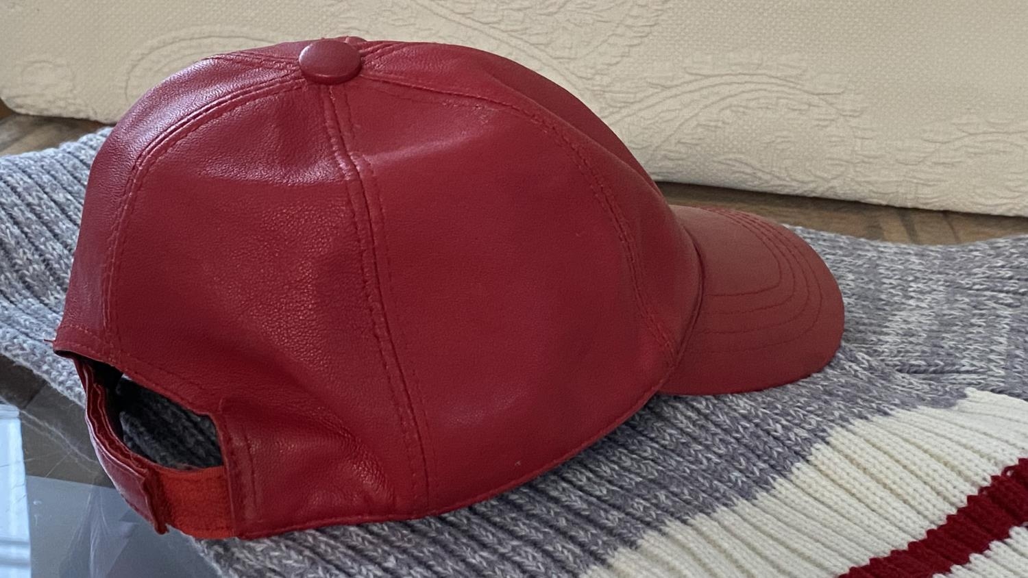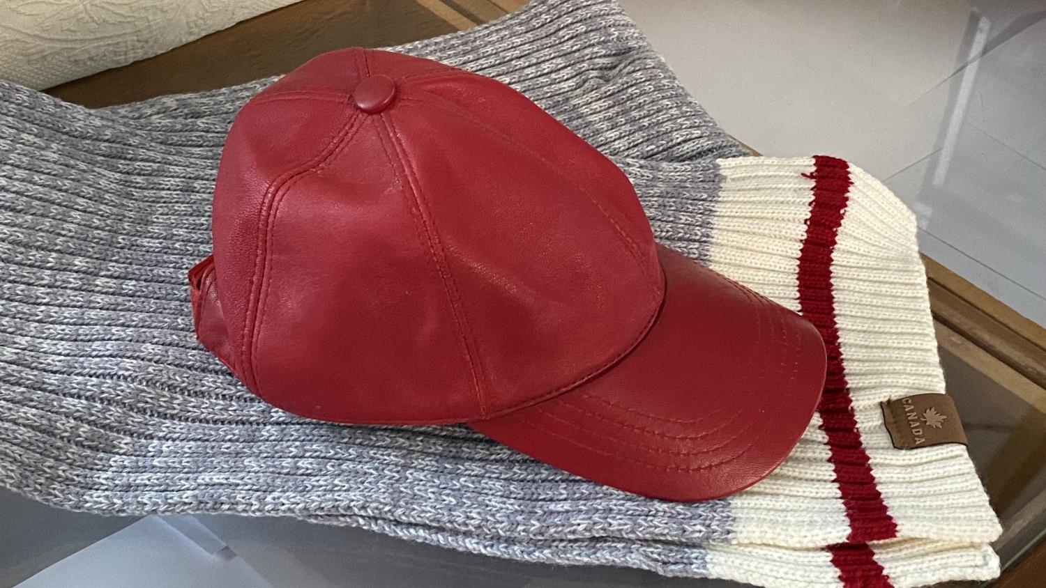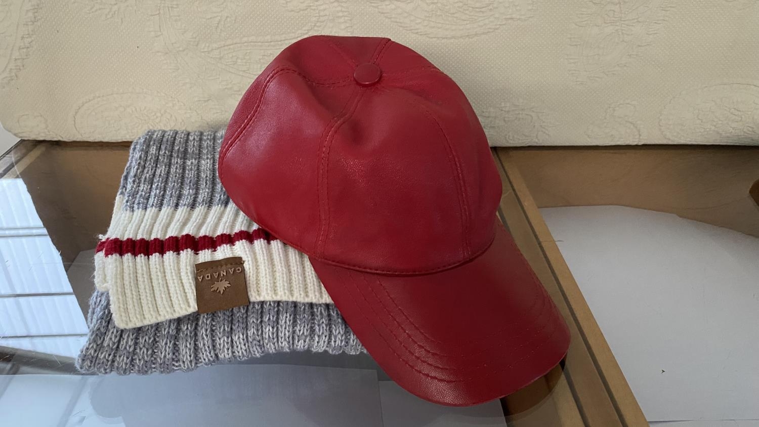 Alexi Andriotti Real Leather Red Cap Together with Canada Grey Knitted Scarf