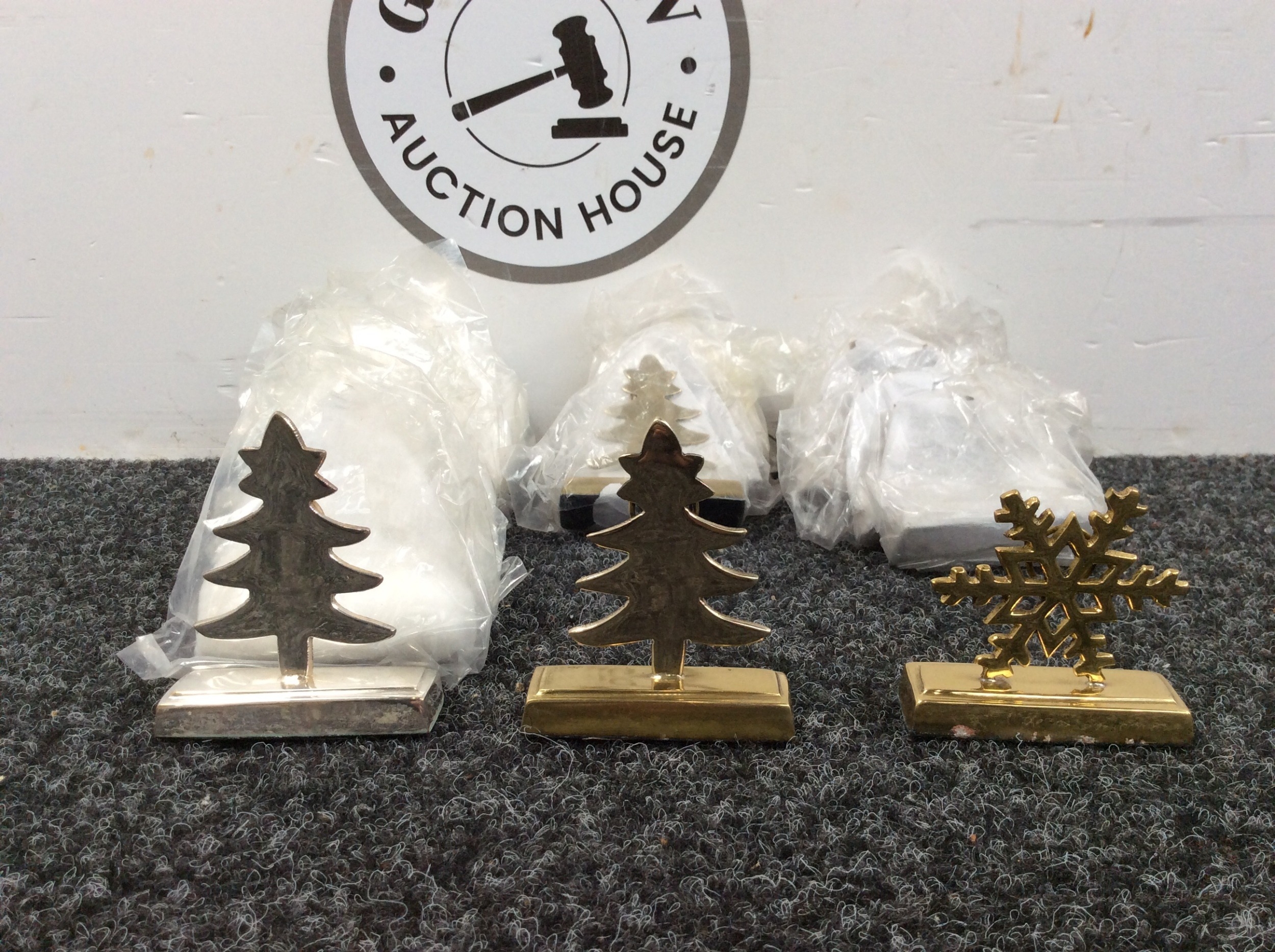 Qty Of Silver Finish & Brass Christmas Place Card Holder (19) 2” Tall - New