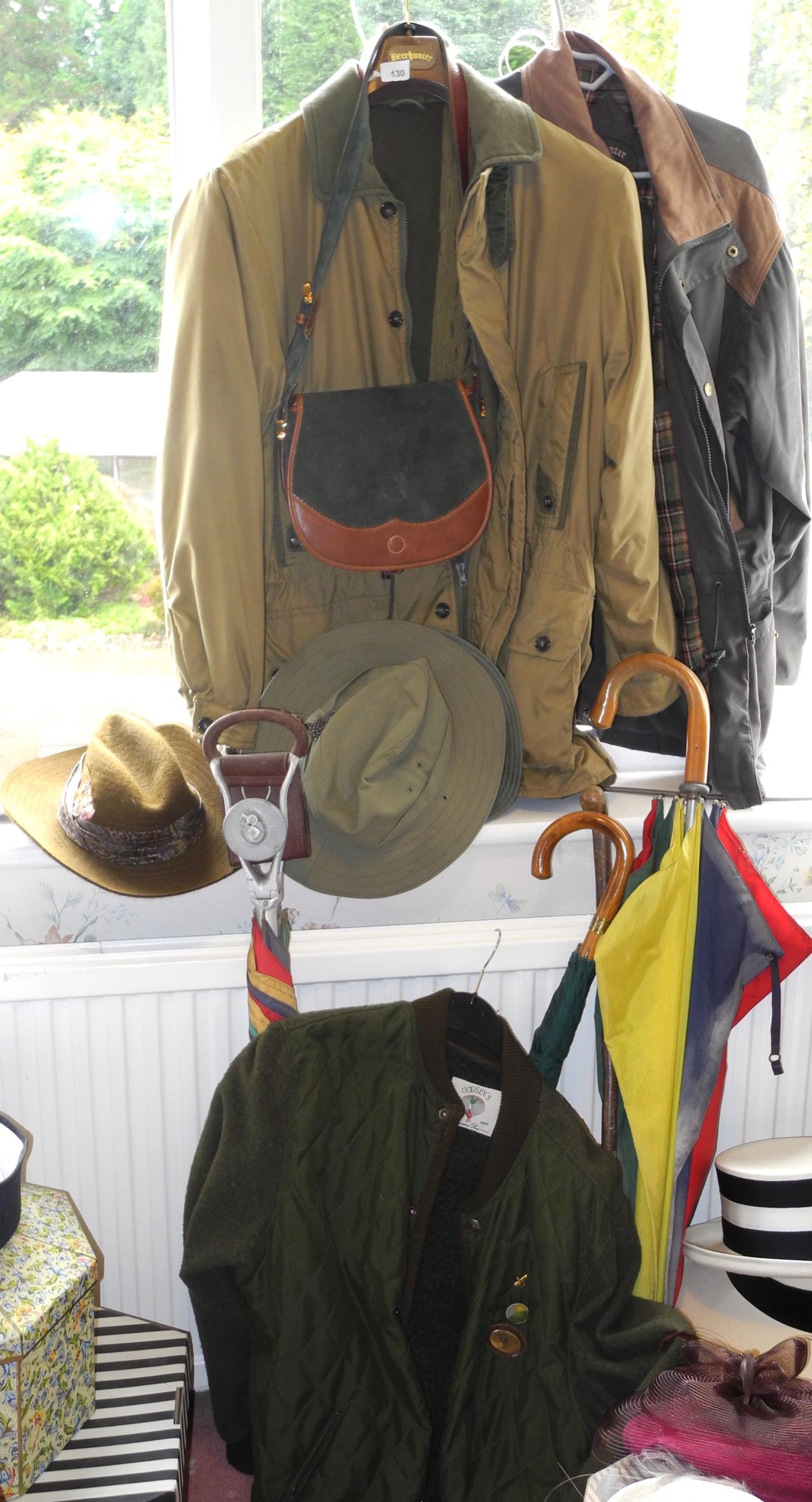 Country Sports - Beaver coat, 40in; Deerhunter coat, 48in; hats, shooting stick, umbrella; etc