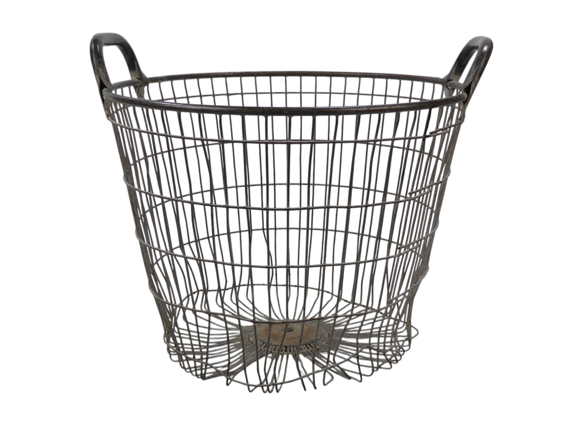 A vintage wire basket - with twin handles to the rim and of tapering circular form, 37cm high.
