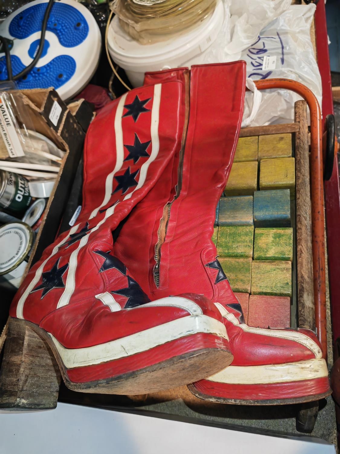 Pair Of Retro Red Star Patterned Boots