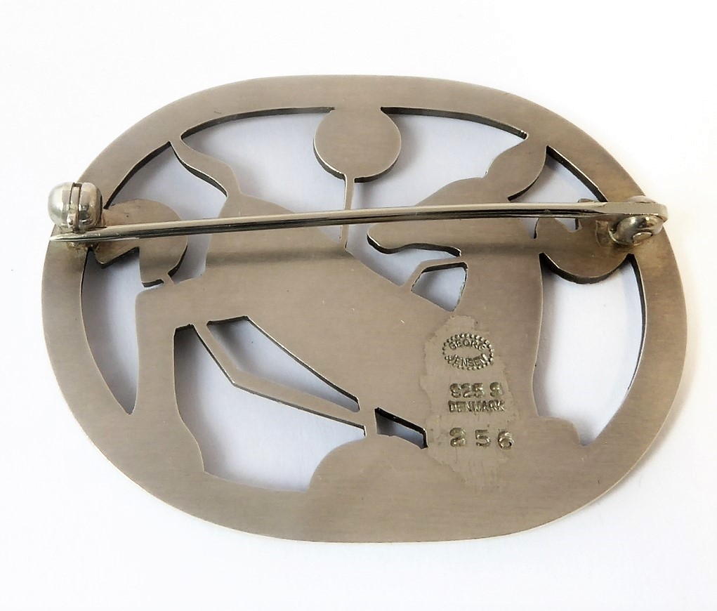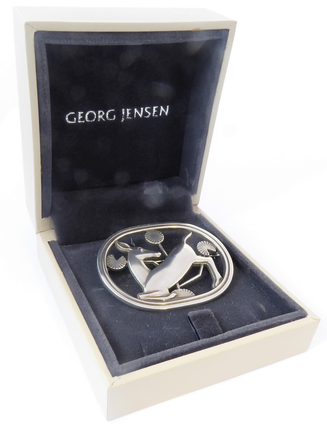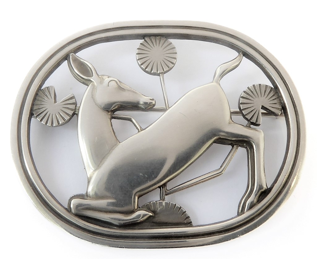 A deer floral brooch by Georg Jensen: design number 256, the reverse with George Jensen stamp, marked '925' and '256' (width 4.4cm, 13.8g) with maker's case and outer cardboard case