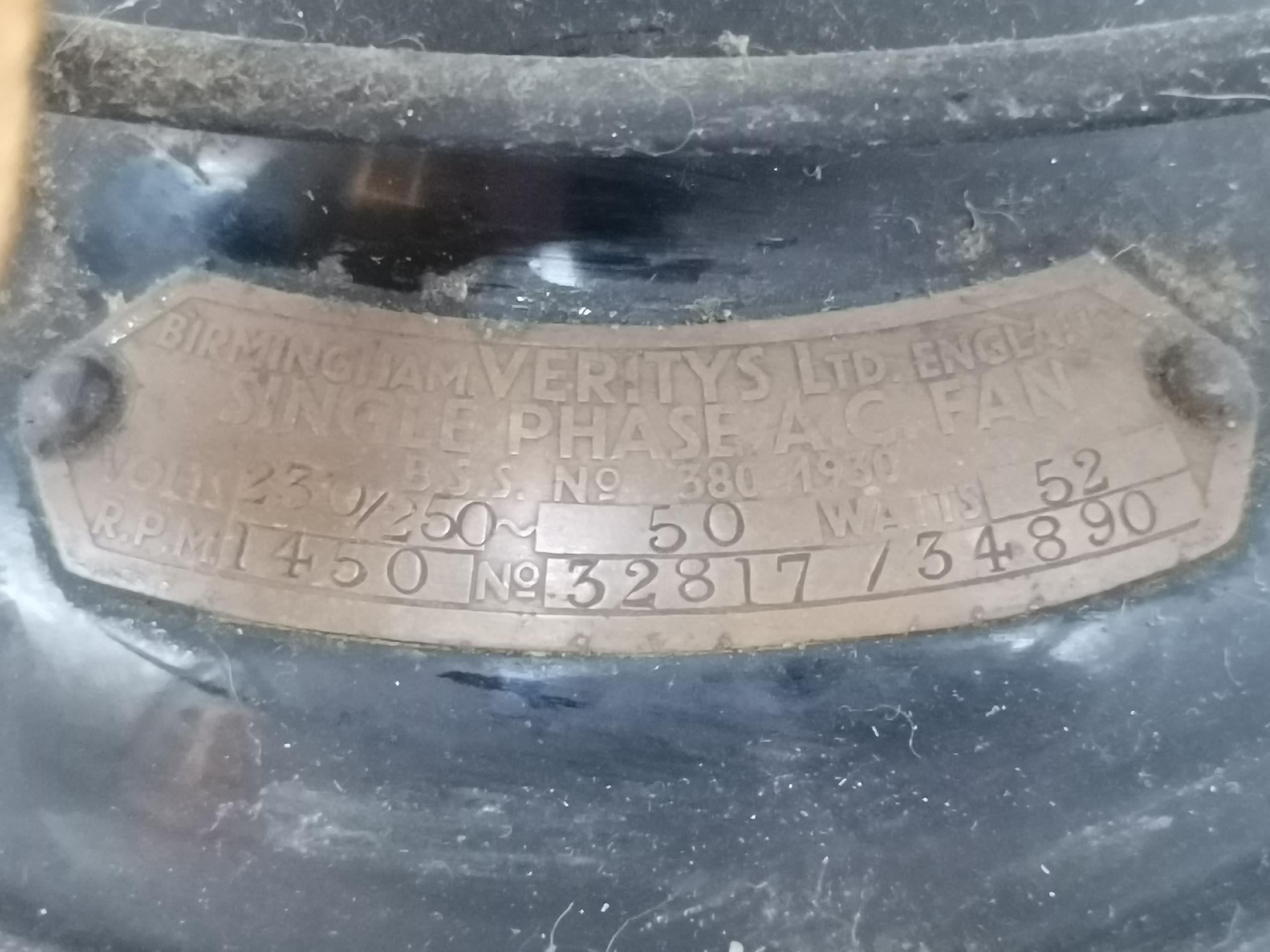 Antique Veritys Ltd Electric 12" Fan 1920's brass and metal