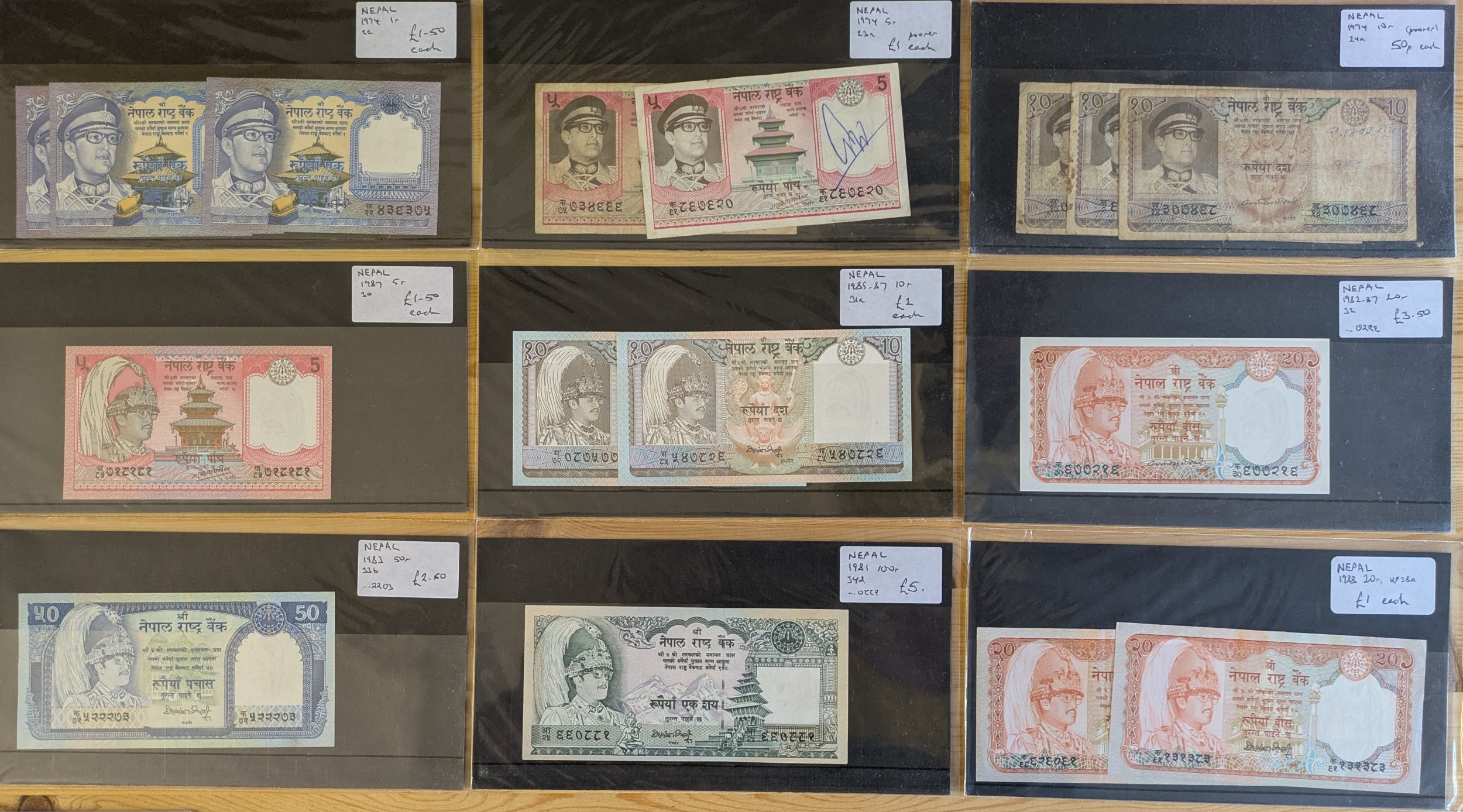 Banknotes; Nepal; 1974-88 seln. of 9 different, plus 7 ...