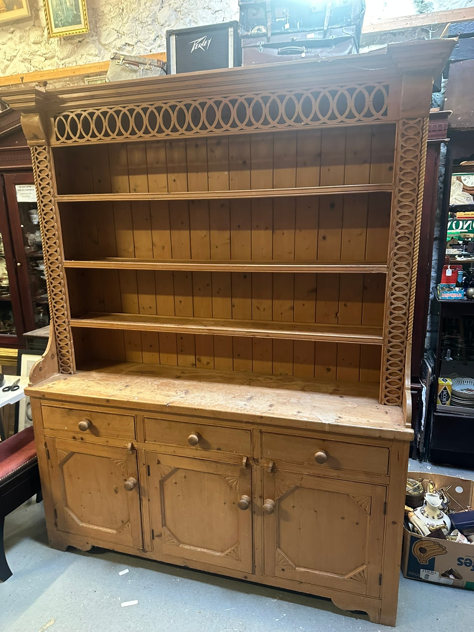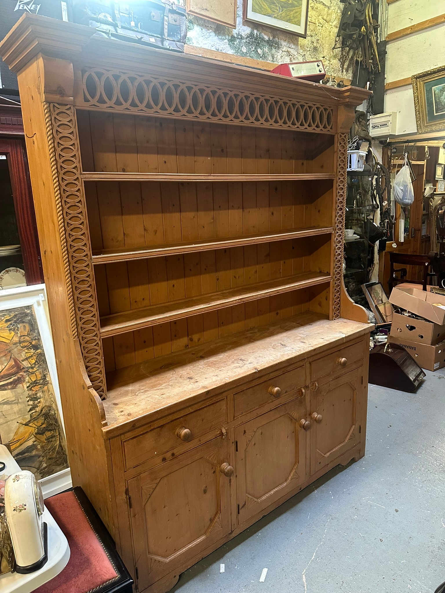 Large carved pine dresser, excellent condition 18.5''d x 85''h x 66''w