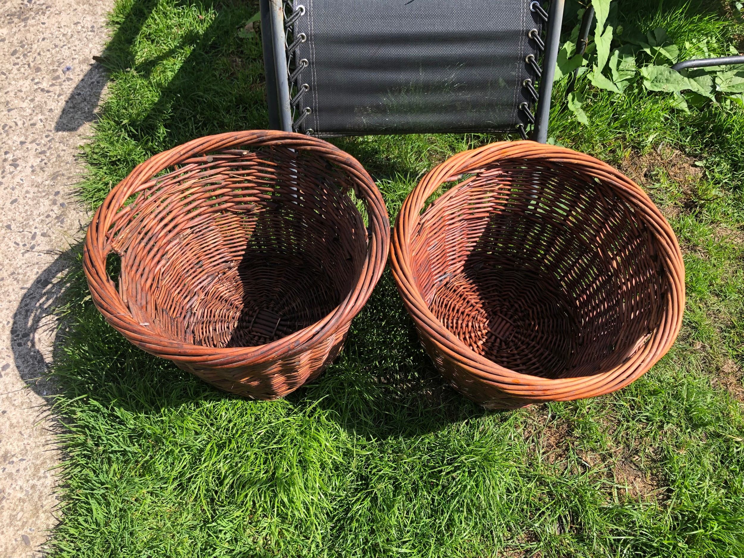2 Hand made willow baskets 17" diameter