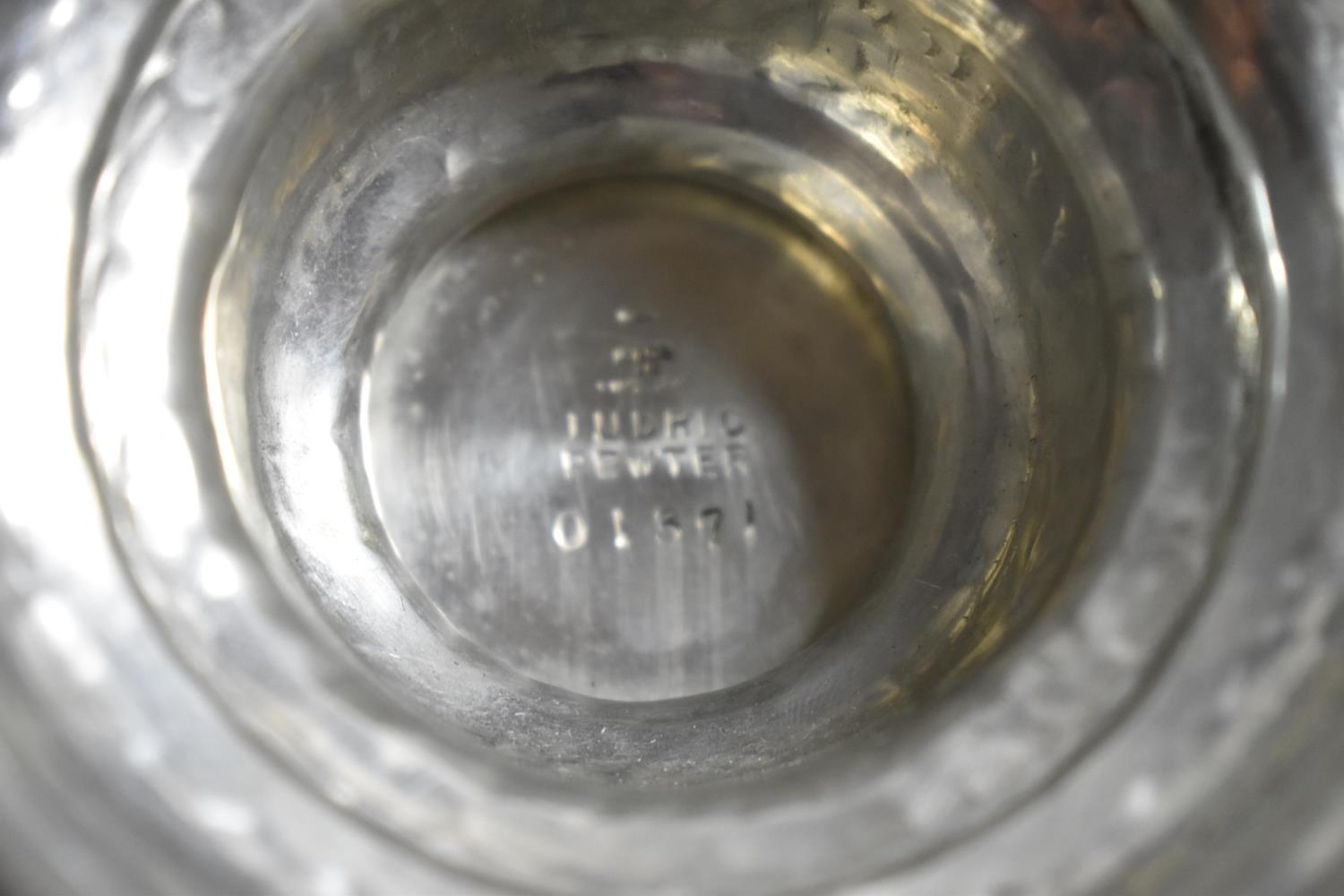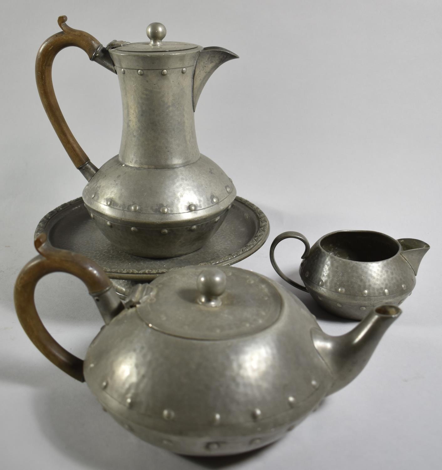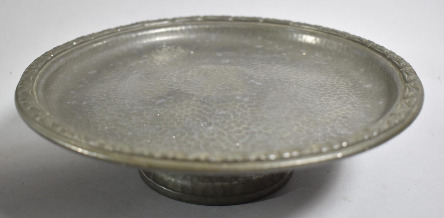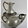 A Tudric Pewter Pedestal Comport No.01371, 20.5cm Diameter Together with a Three Piece Pewter Teaservice