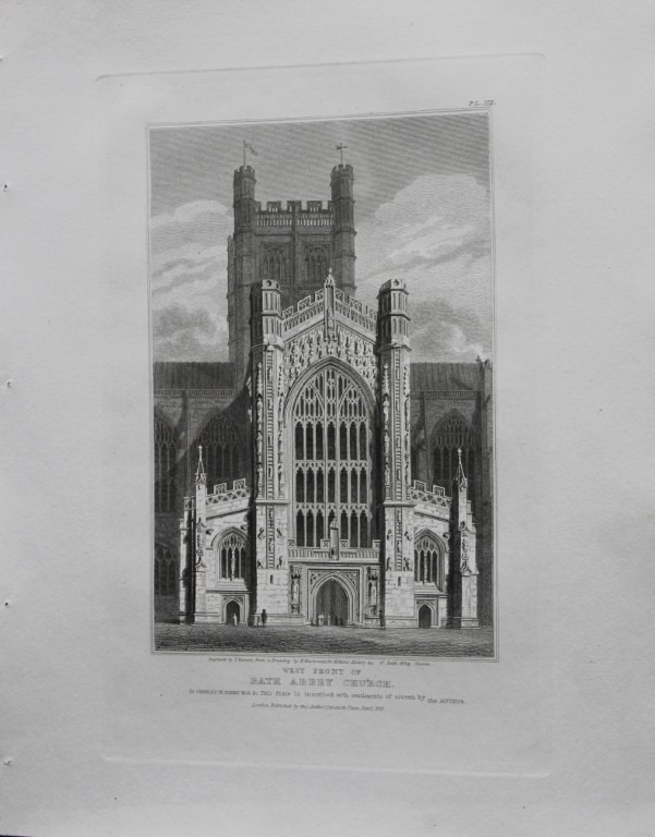 F Mackenzie - The Abbey Church, Bath engraved by T Ranson 1825. Original engraving of the West End of Bath Abbey Church by T Ranson from a drawing by F Mackenzie. Published by John Britton, London 1825