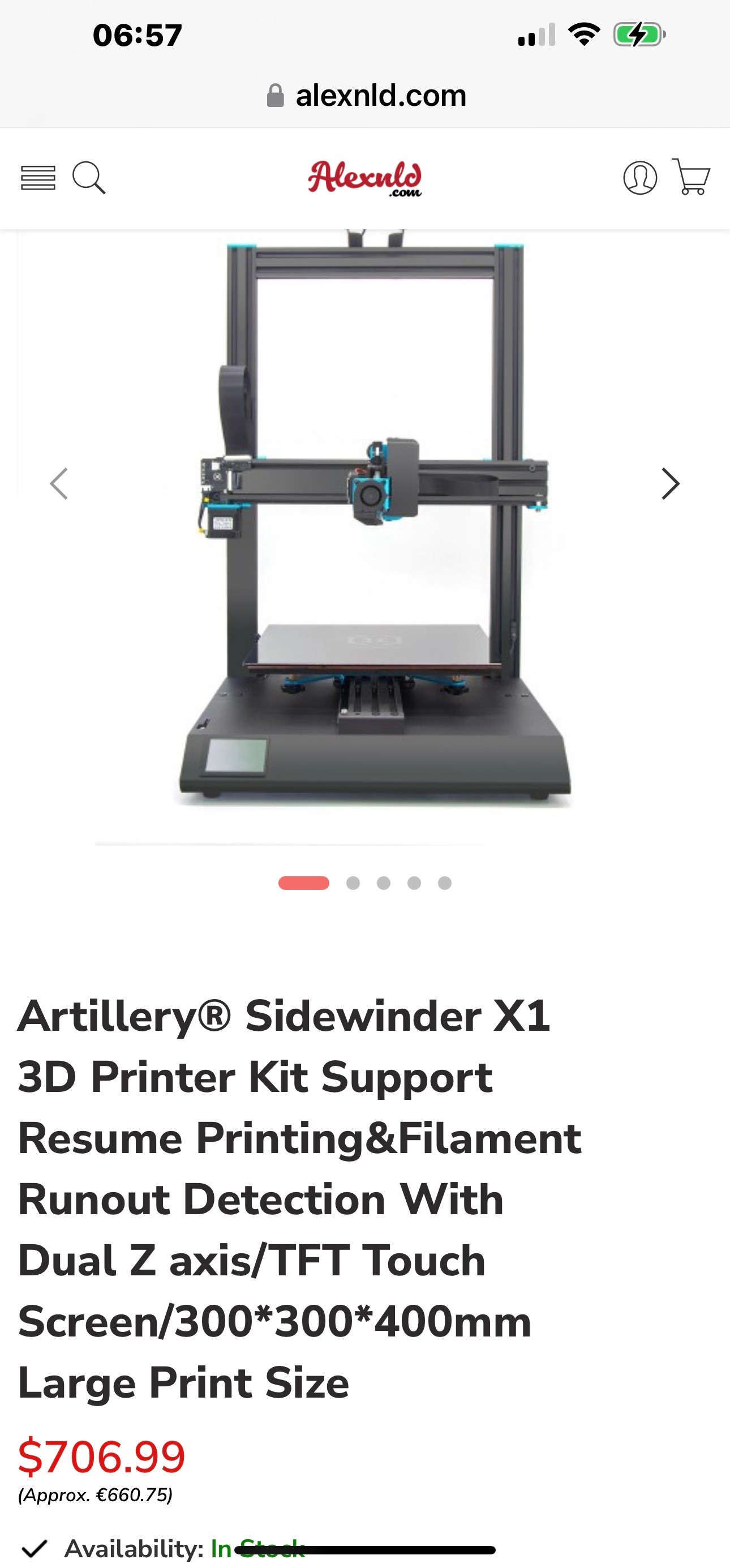Star Lot : A brand new in box Artiller 3D Printer Model: Sidewinder X1. This printer works with most slicing / printing software such as Simplify 3D Cura, Repetier Host etc. Comes with original assembly and operating instructions. RRP: $706 (it's never been out the box. )