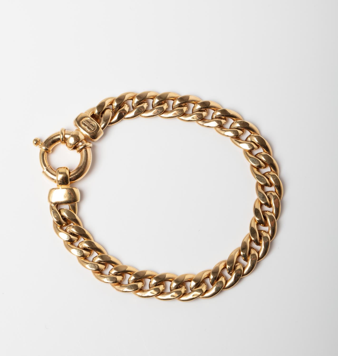 A 9CT GOLD CURB BRACELET A 19cm long Curb bracelet with Signoretti Clasp crafted in 9ct yellow gold weighing 12.03 grams