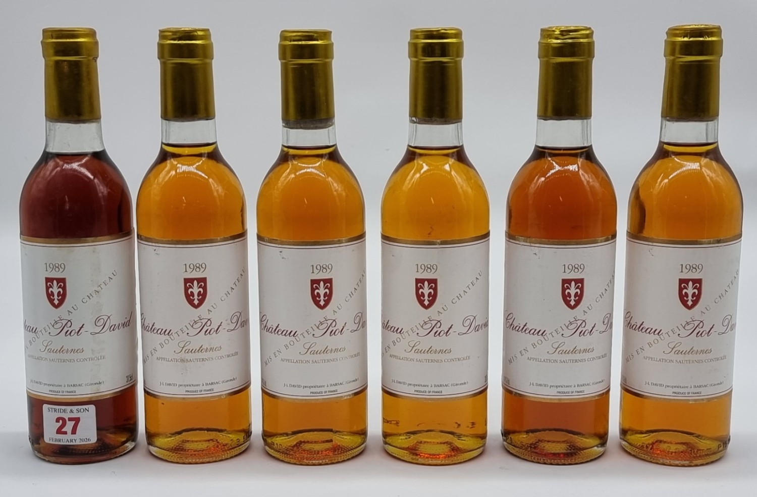 Six 37.5cl bottles of Chateau Piot David, 1989, Sauternes. (6)