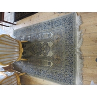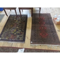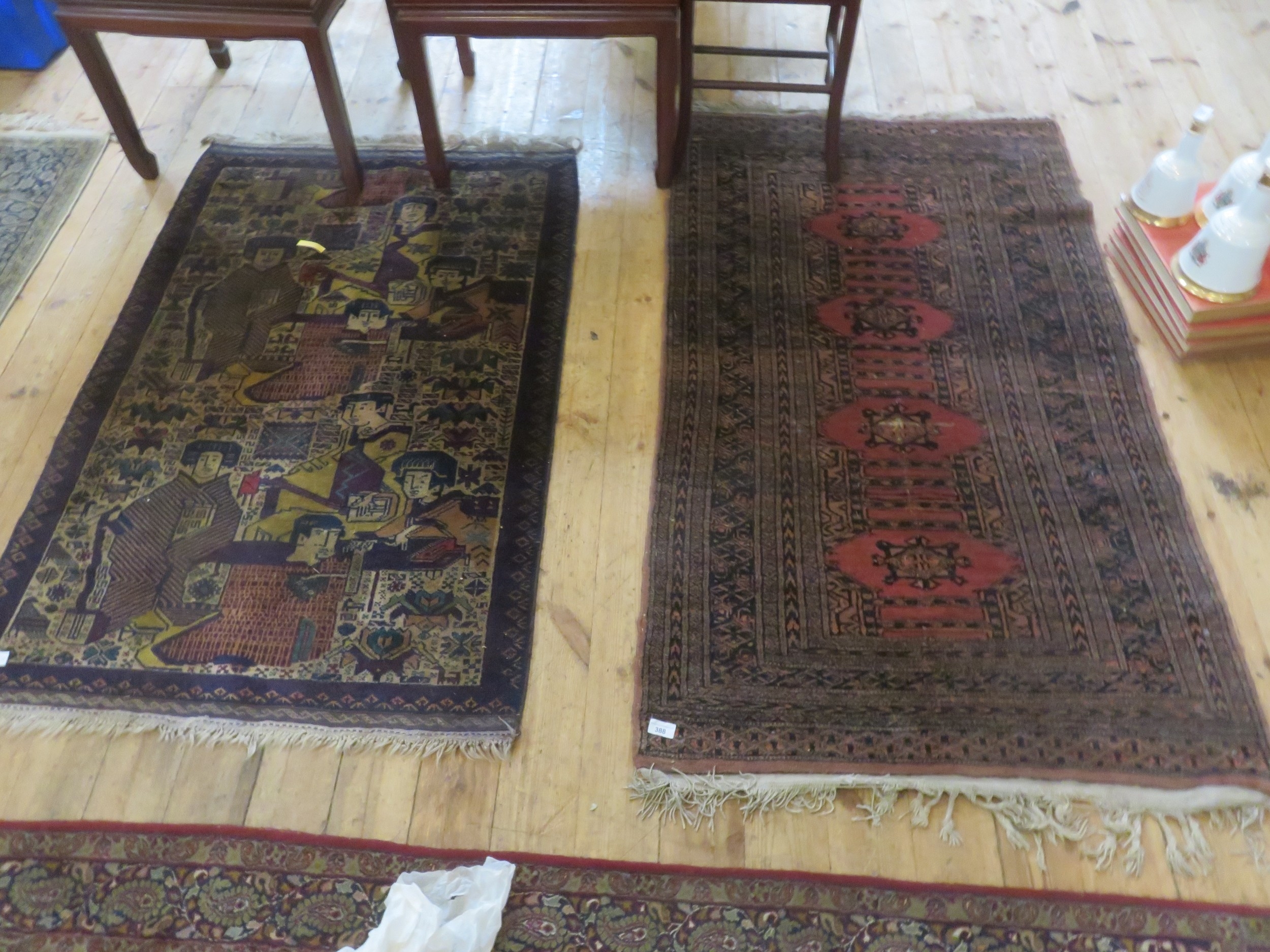 Fringed rug depicting eastern figures 53 by 35 inches plus one other