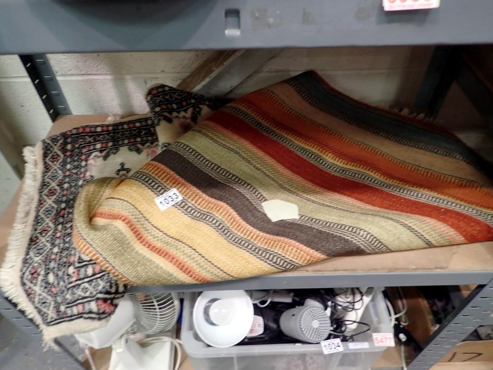Small silk rug and a 1970s striped rug, 75 x 230 cm. Not available for in-house P&P
