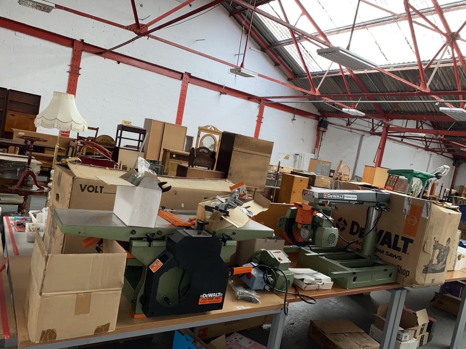 A Dewalt DW125 powershop radial arm saw and a Dewalt DW50 thicknesser- planer- both new and boxed (please check that all fittings and fasteners are present)