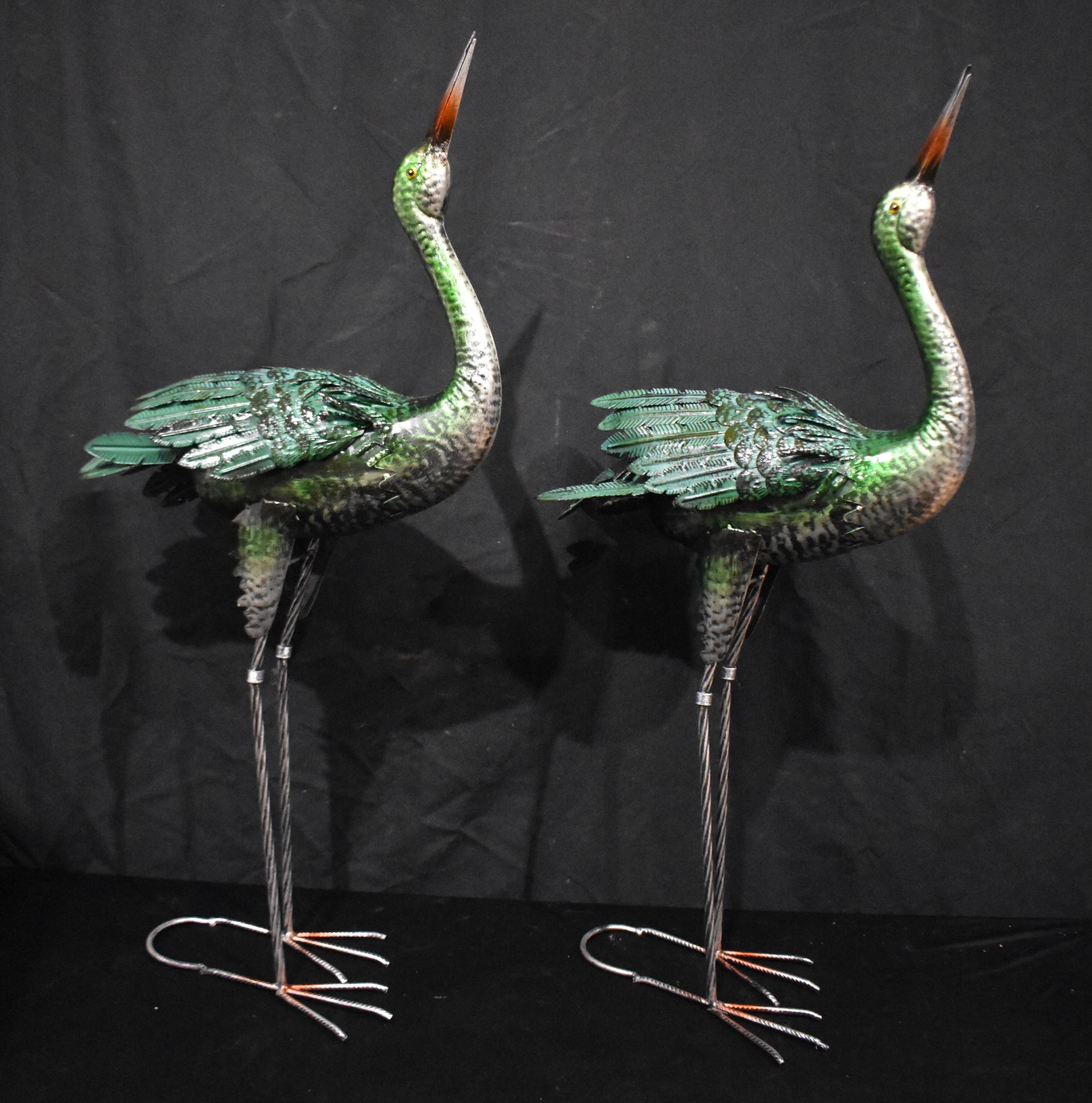 A pair of metal Herons 95cm (2)