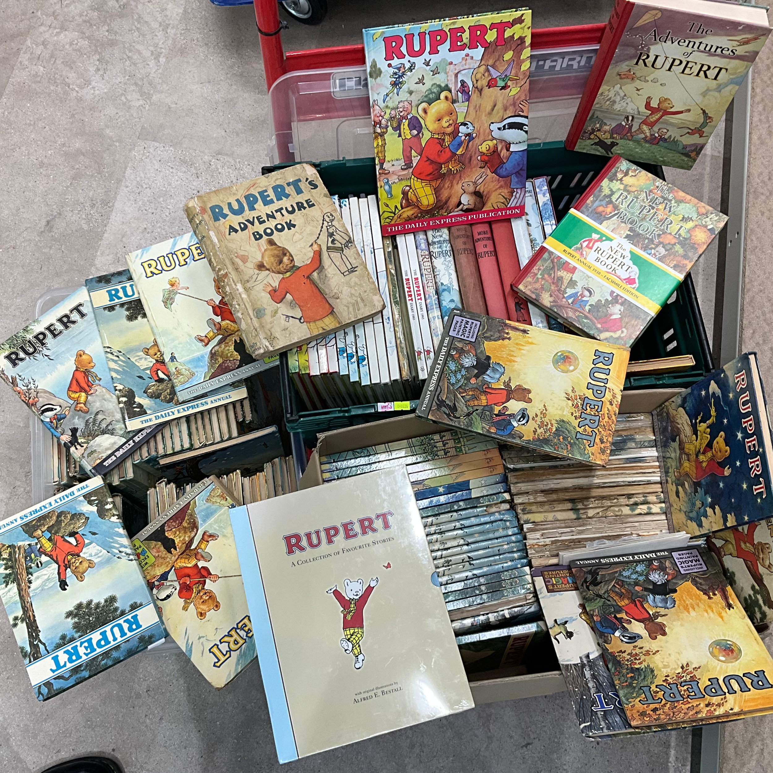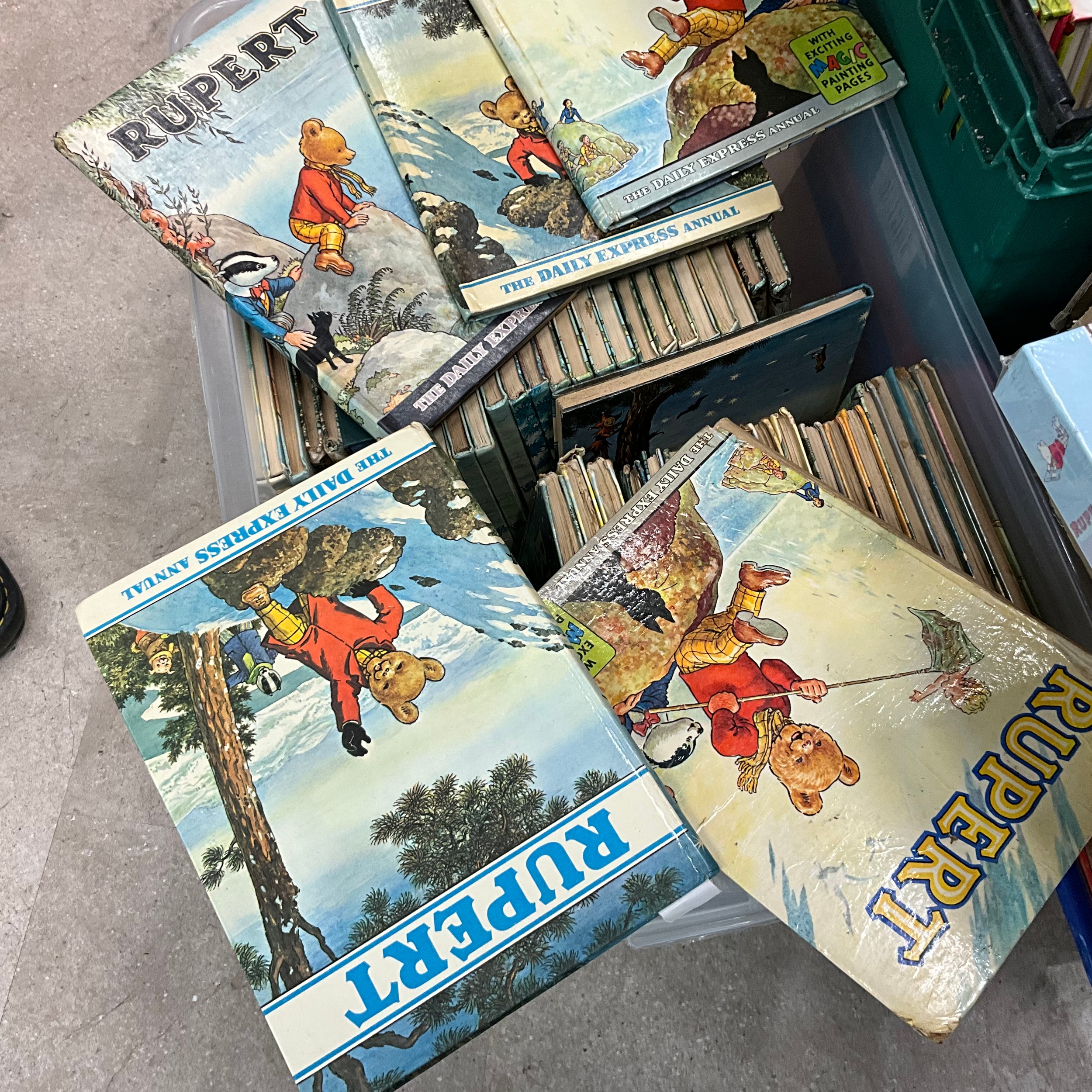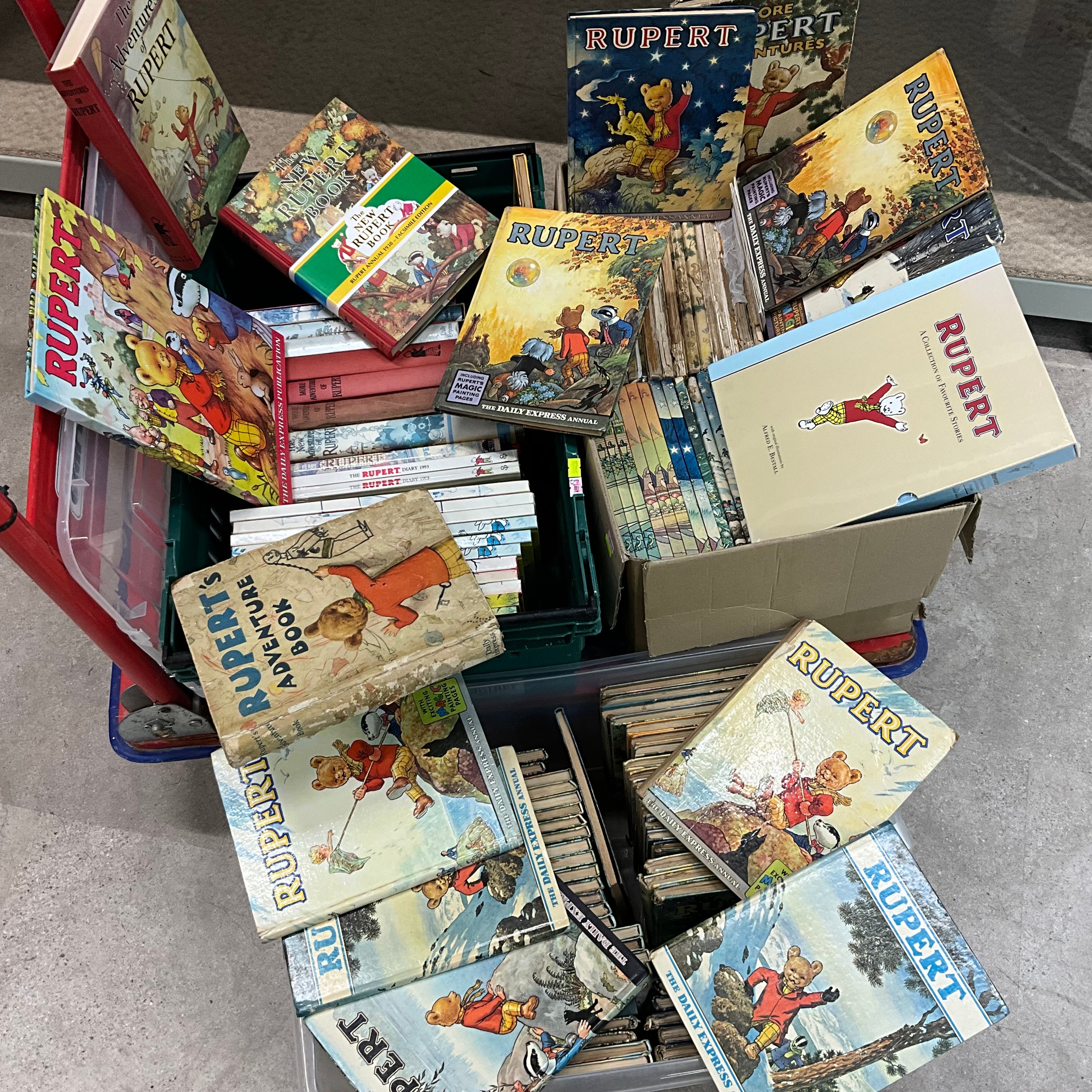 A collection of early 20th-century and later Rupert the Bear annuals. The earliest edition 1936. Illustrated by Bestall. (Three boxes)