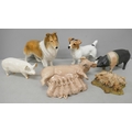 A Beswick Jack Russell terrier, a/f, a Beswick pig, three other pig figures and another dog figure