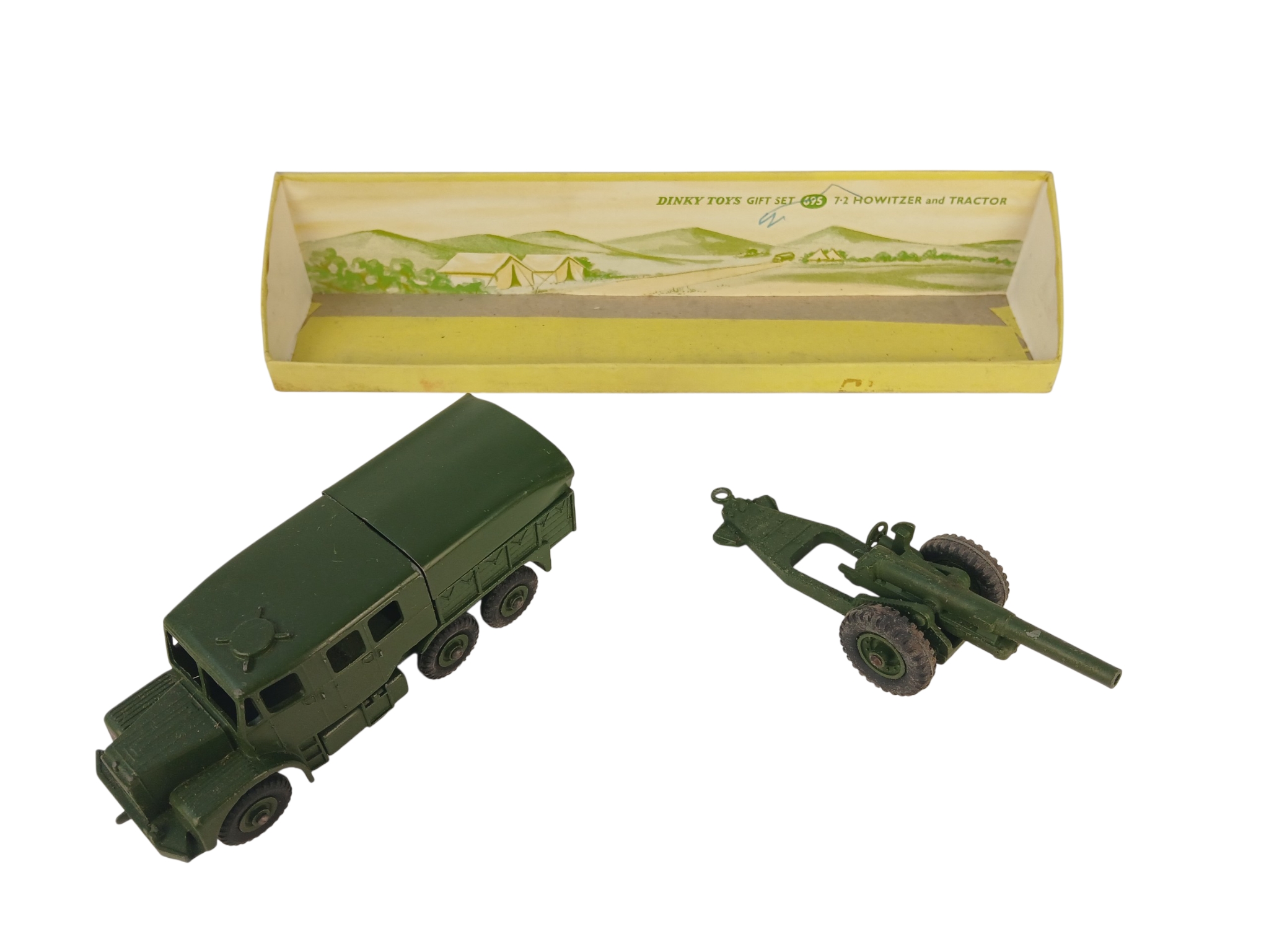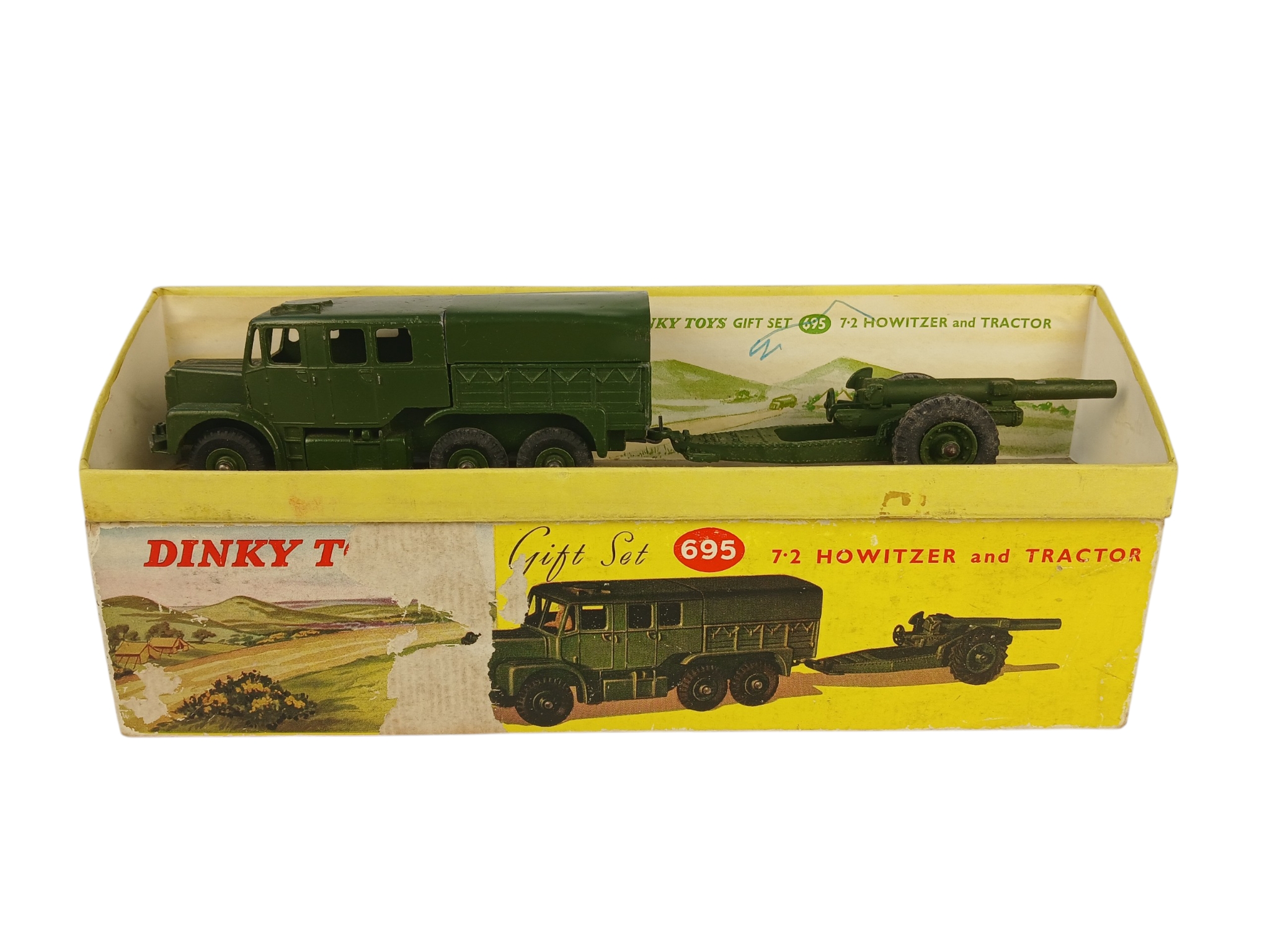 Boxed Dinky Toys Gift Set 695 7.2 Howitzer and Tractor – driver figure and some inner packing missing, box poor