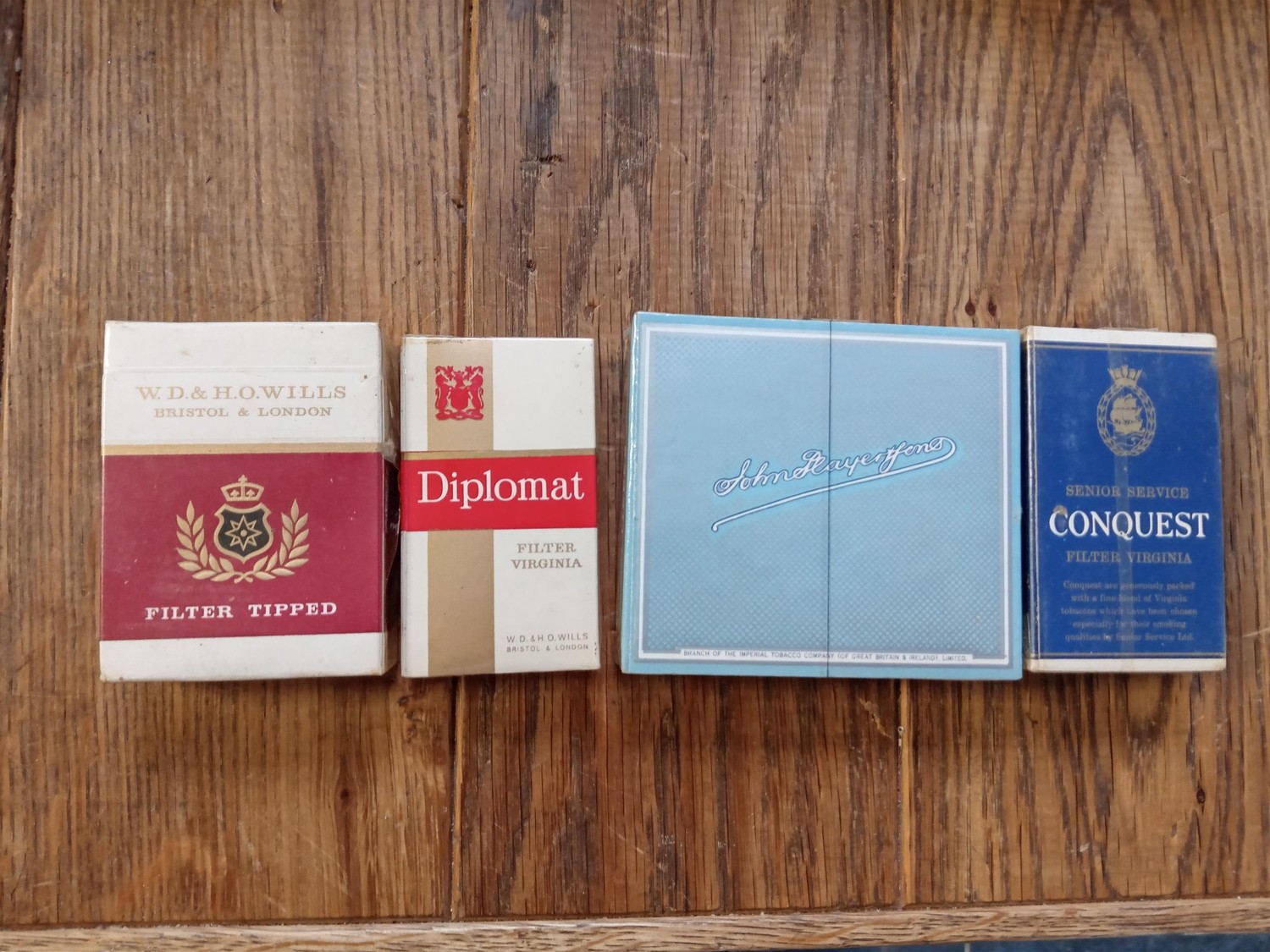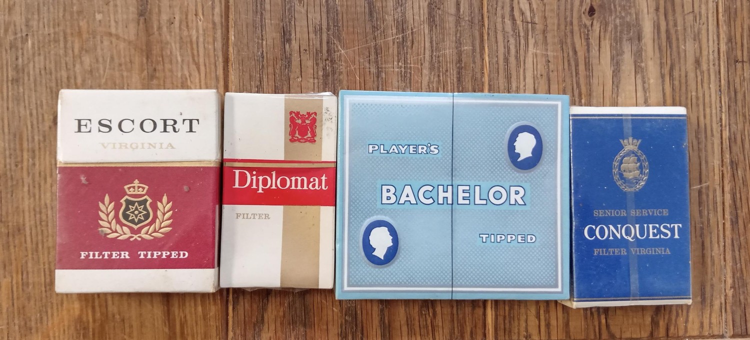 4 packets of sealed vintage cigarettes, Conquest 10, Players Bachelor 20, Escort 20 & diplomat 10