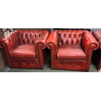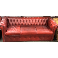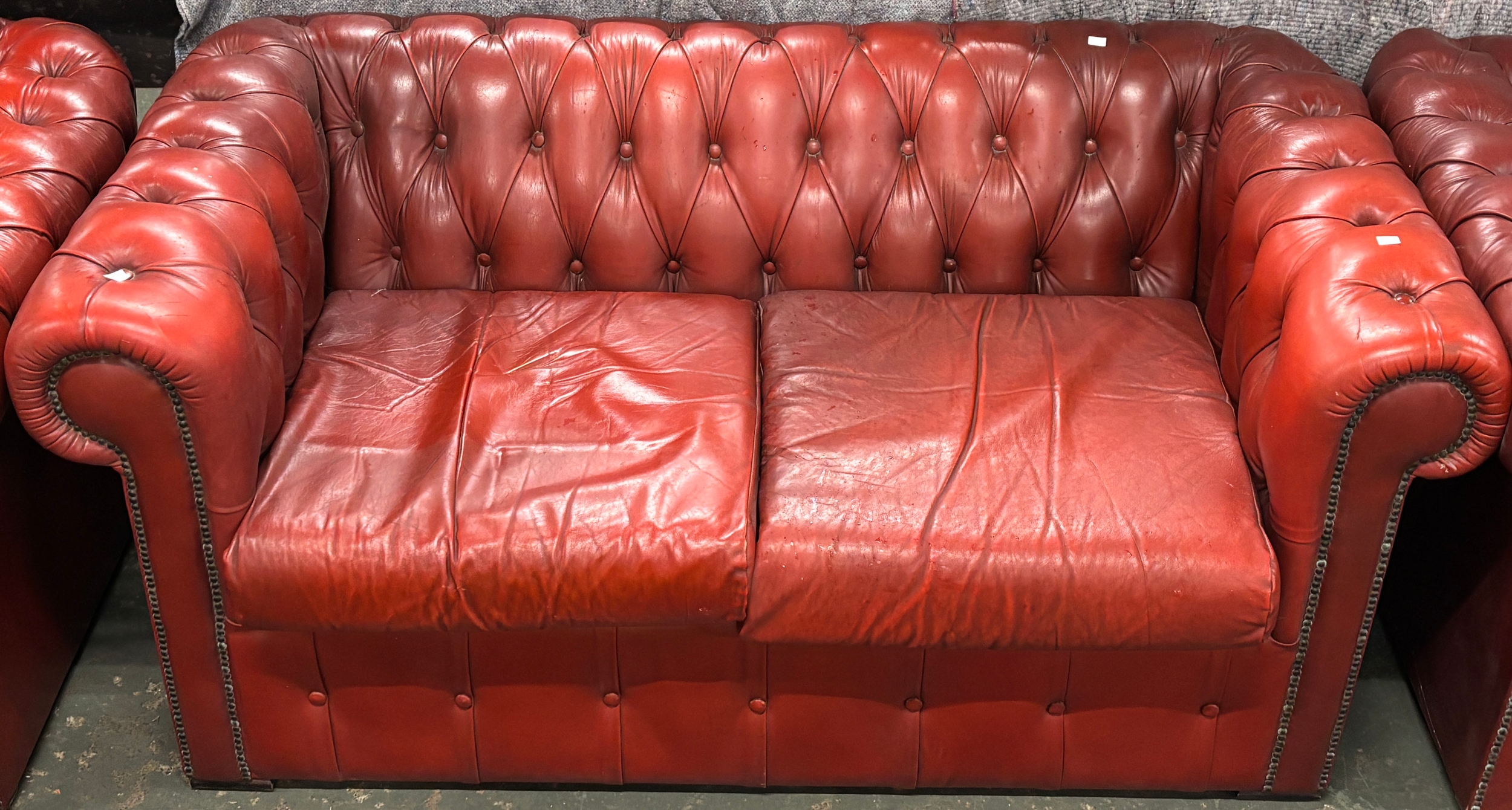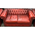 An oxblood leather button upholstered Chesterfield two seater sofa, 160x81x73cmH
