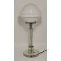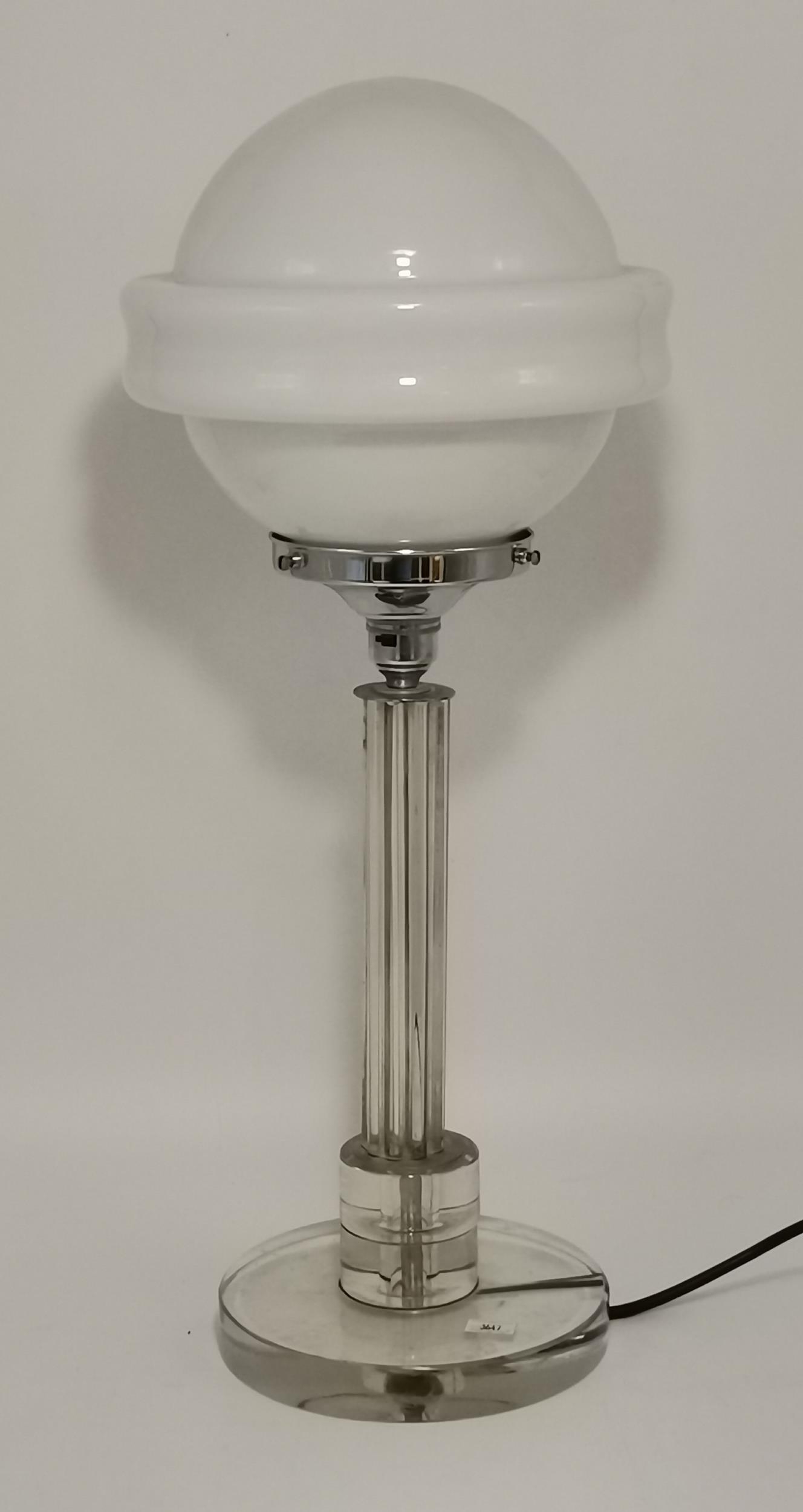 An acrylic and chrome columnar table lamp with white glass shade. 55.5cm high overall