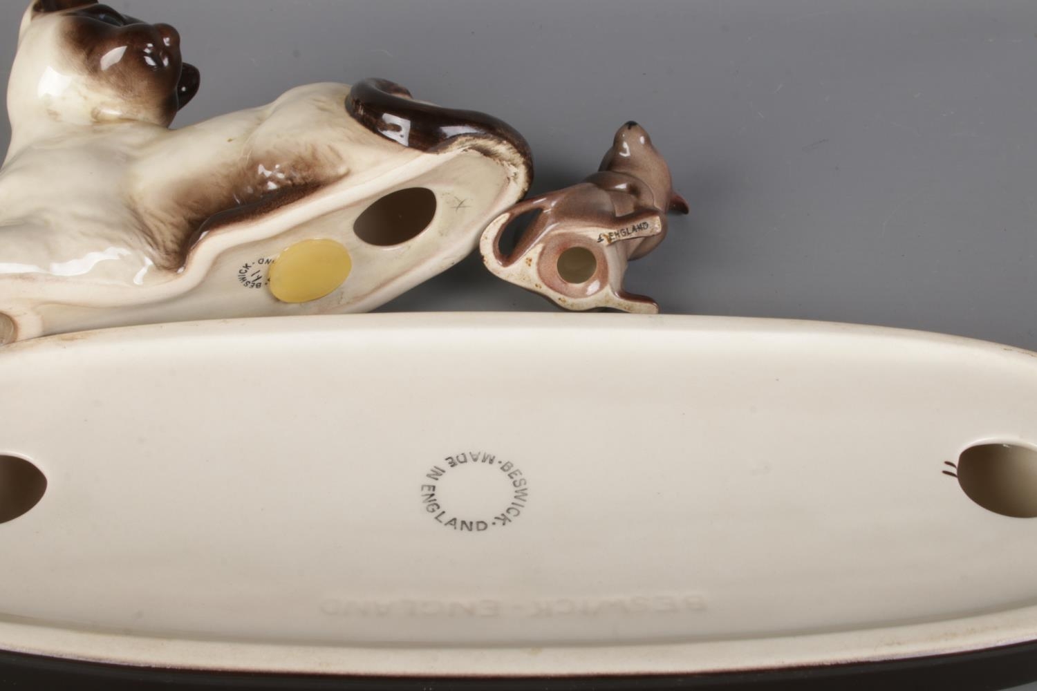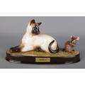 A Beswick laying Siamese cat and mouse on Beswick stand 'Wat...