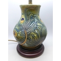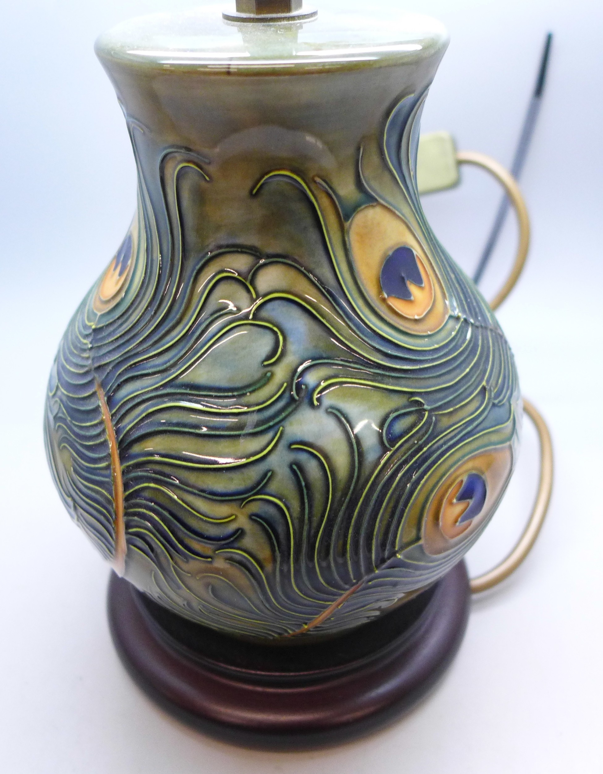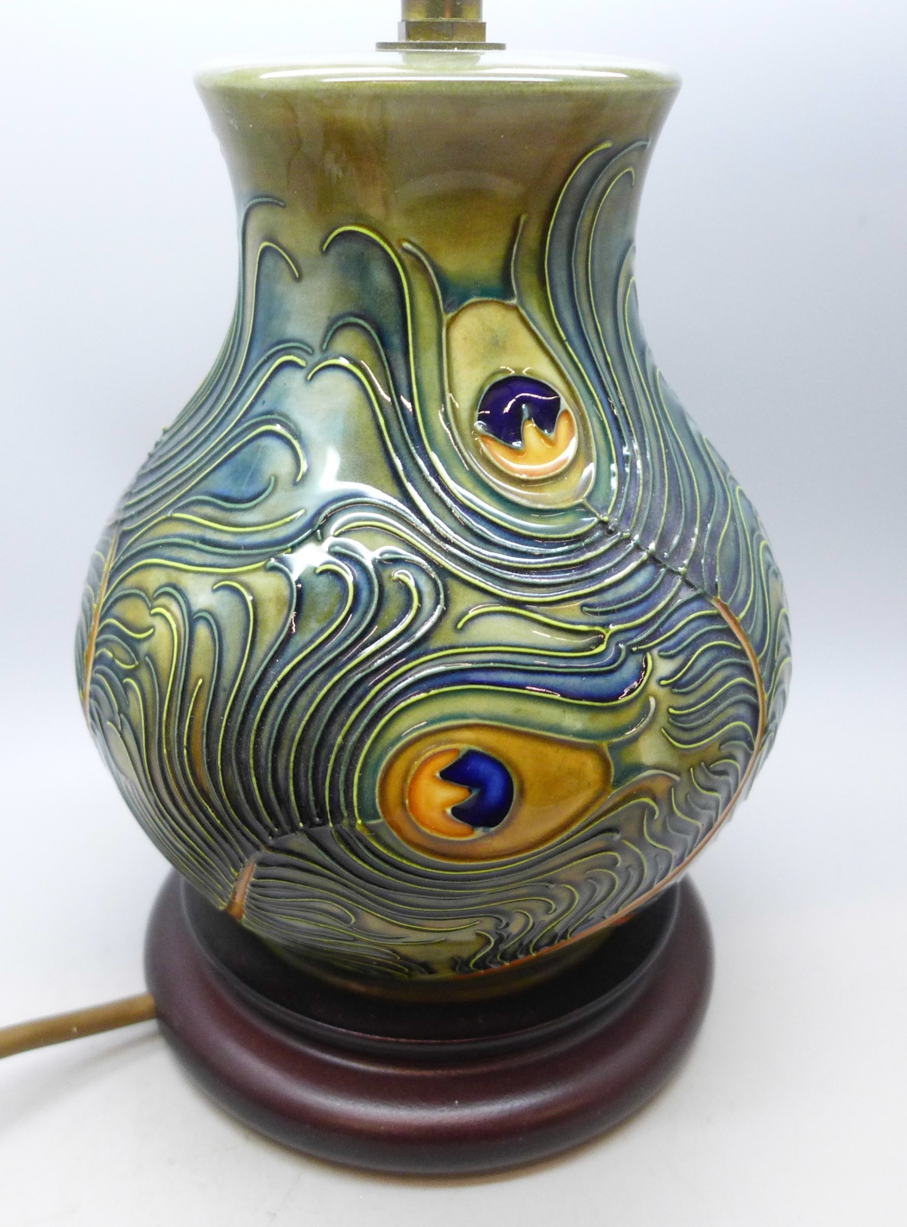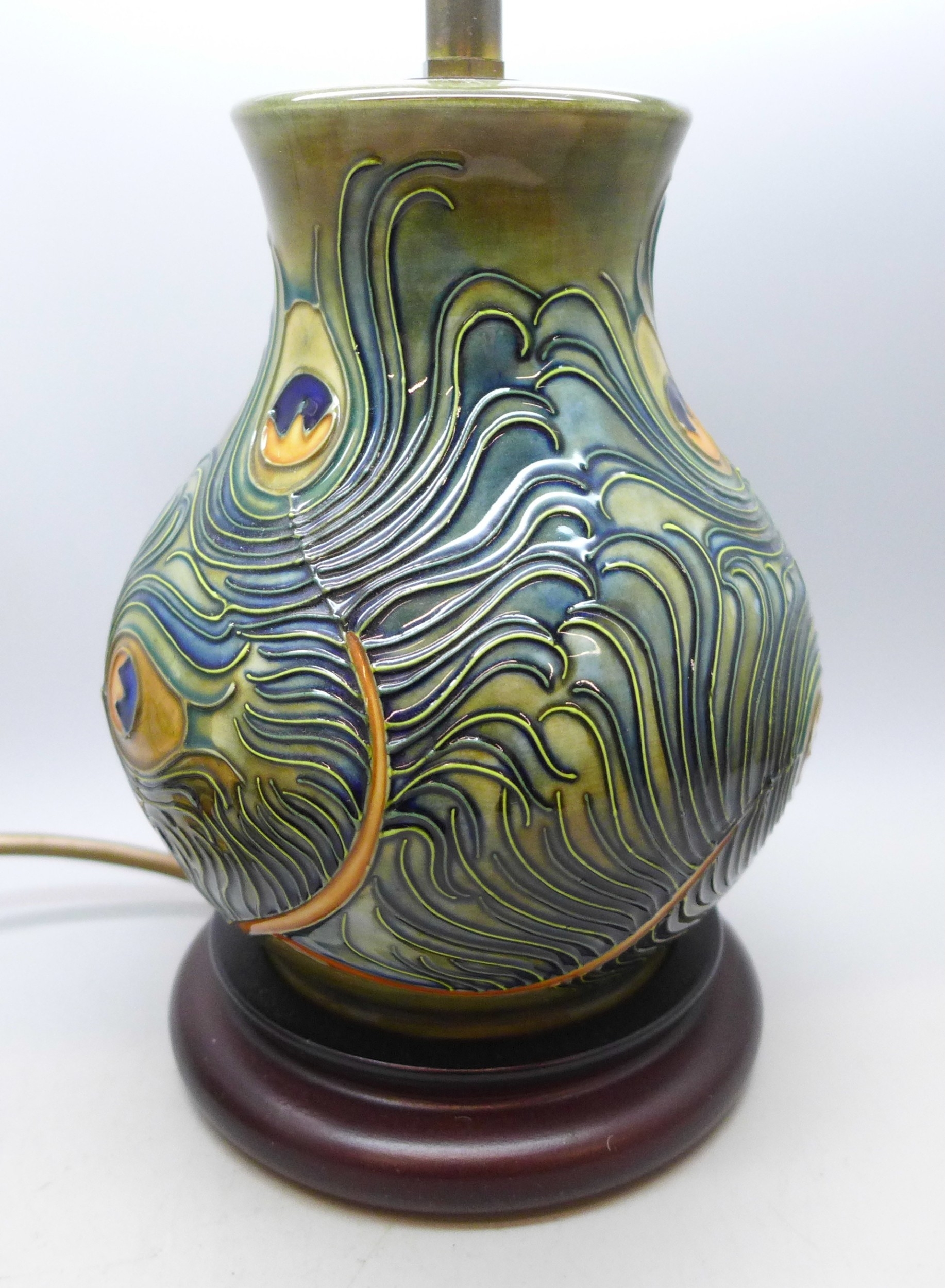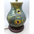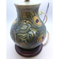 A Moorcroft peacock feather table lamp, 18cm without lamp fitting