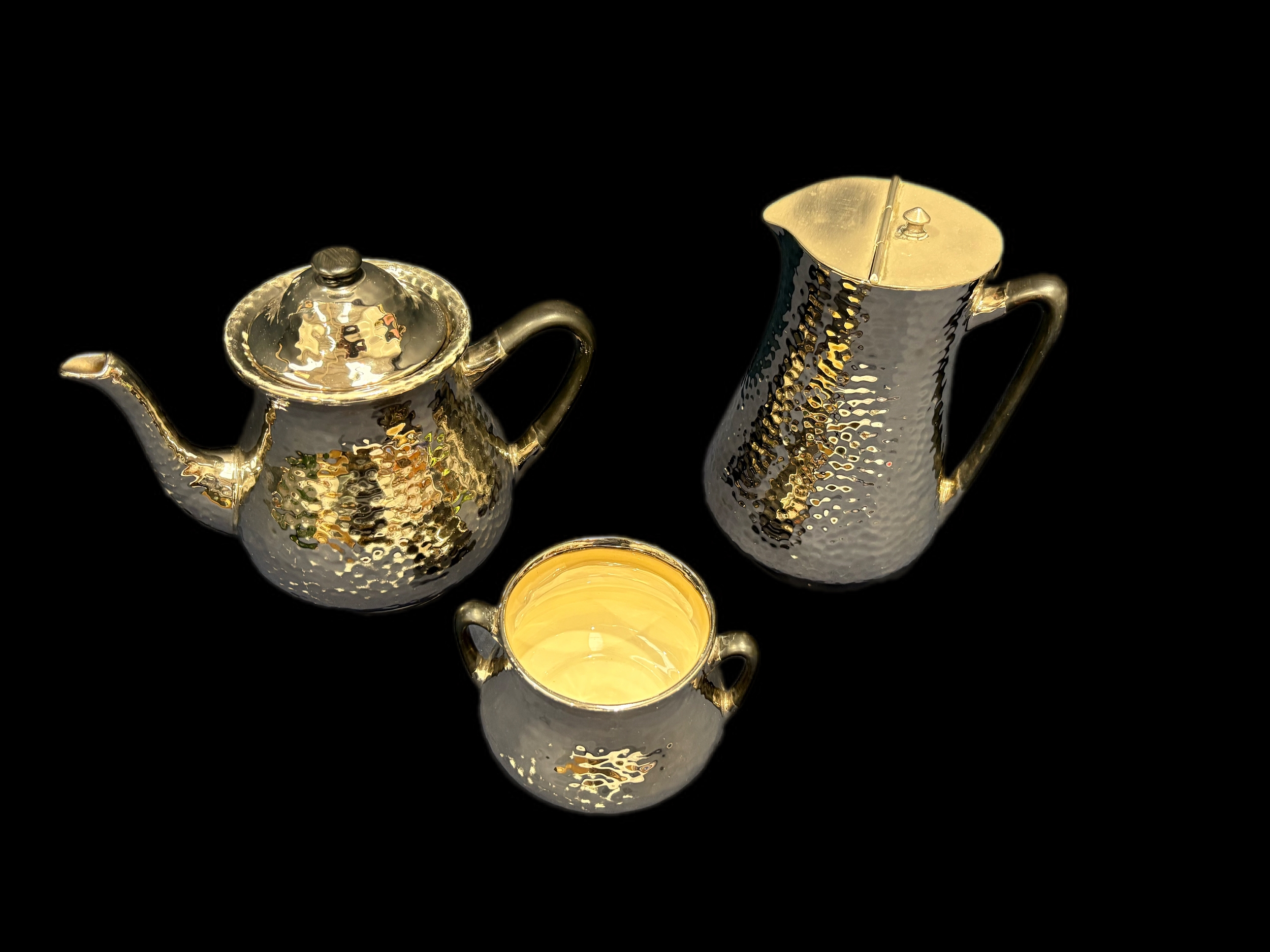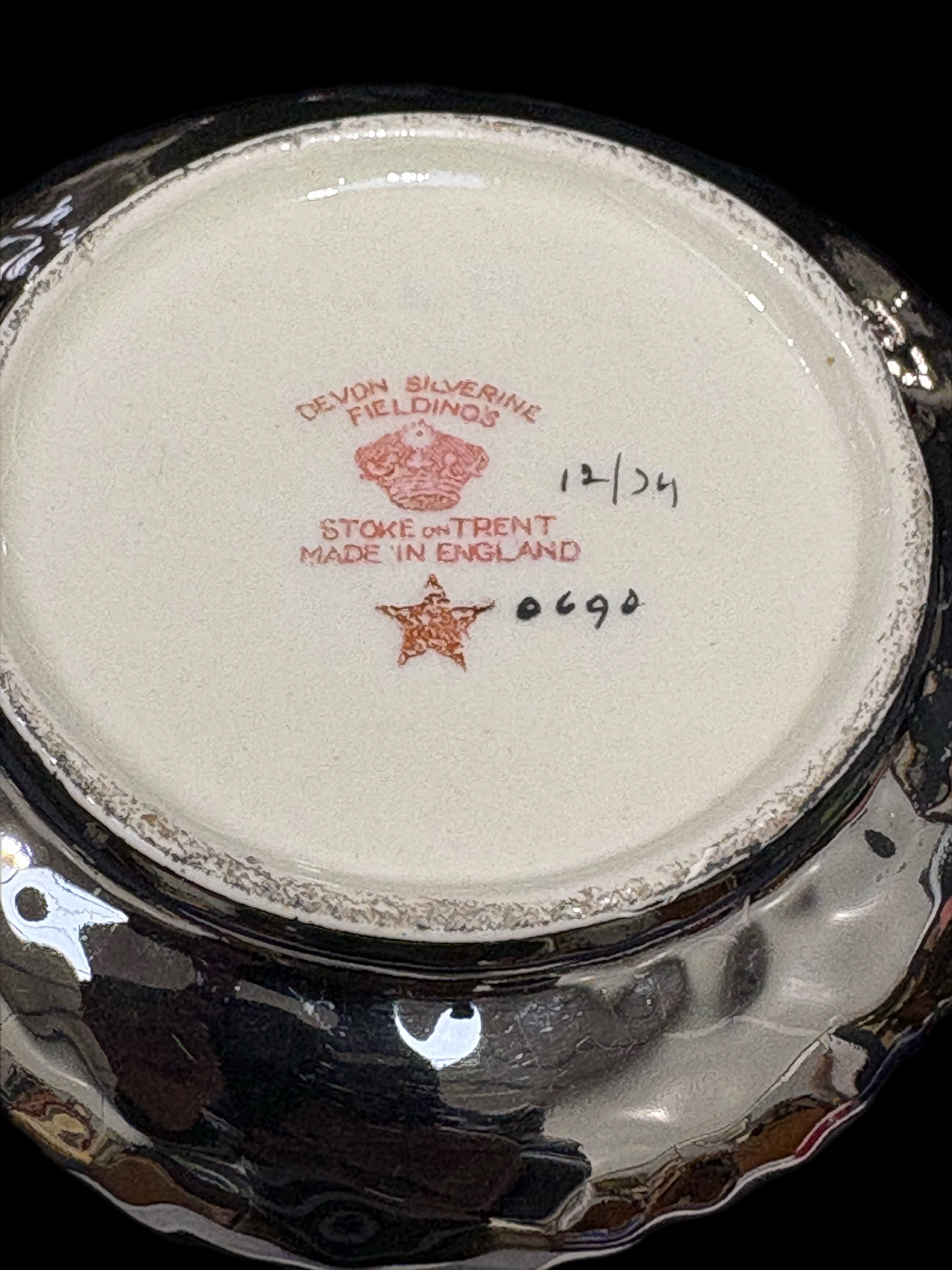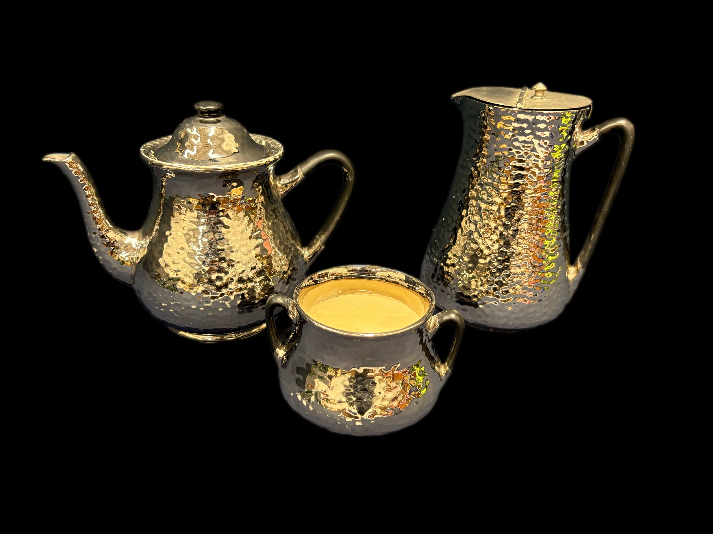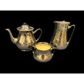 Devon Silverine Fieldings lustre teapot, sugar bowl and hot water jug