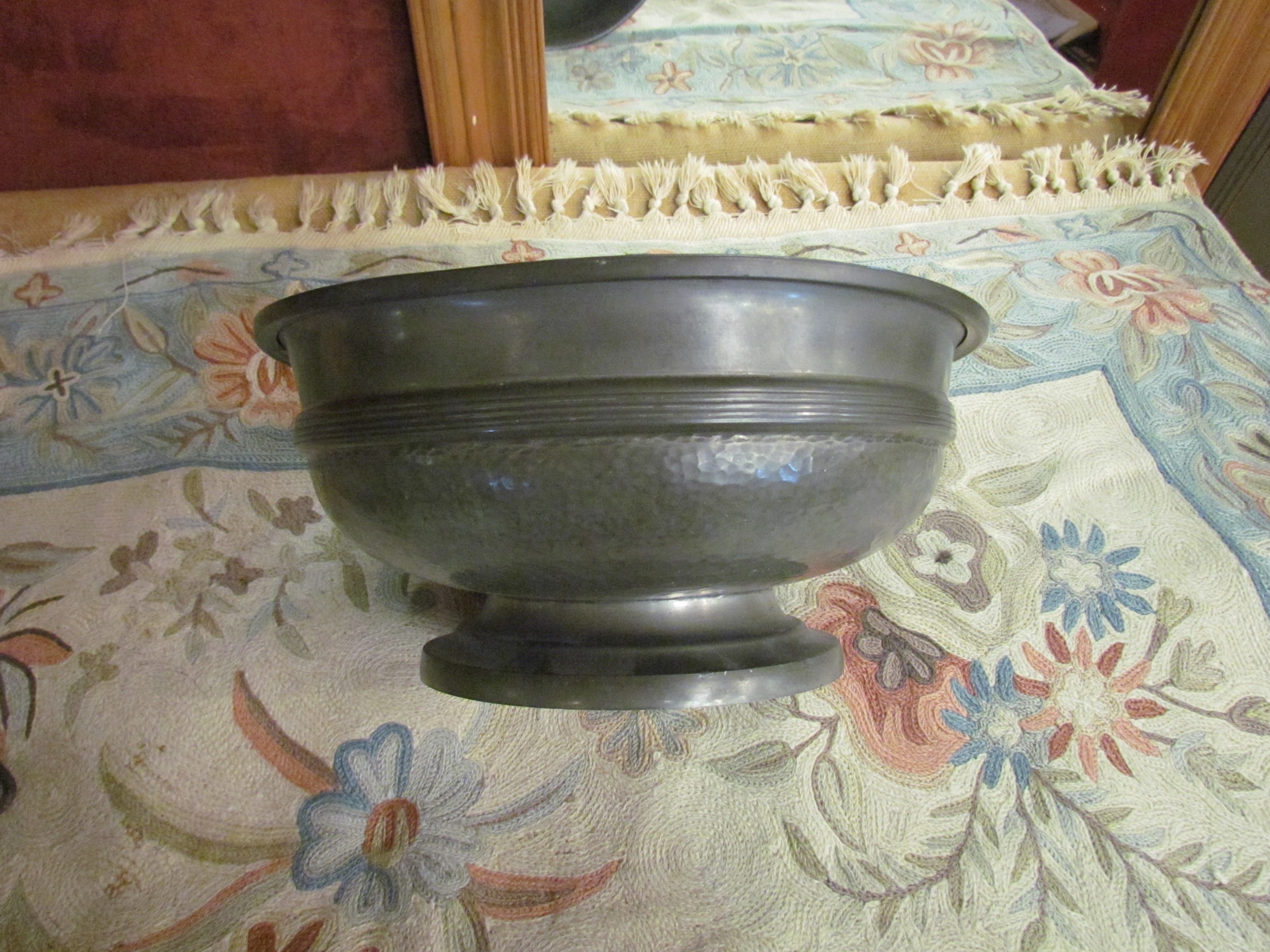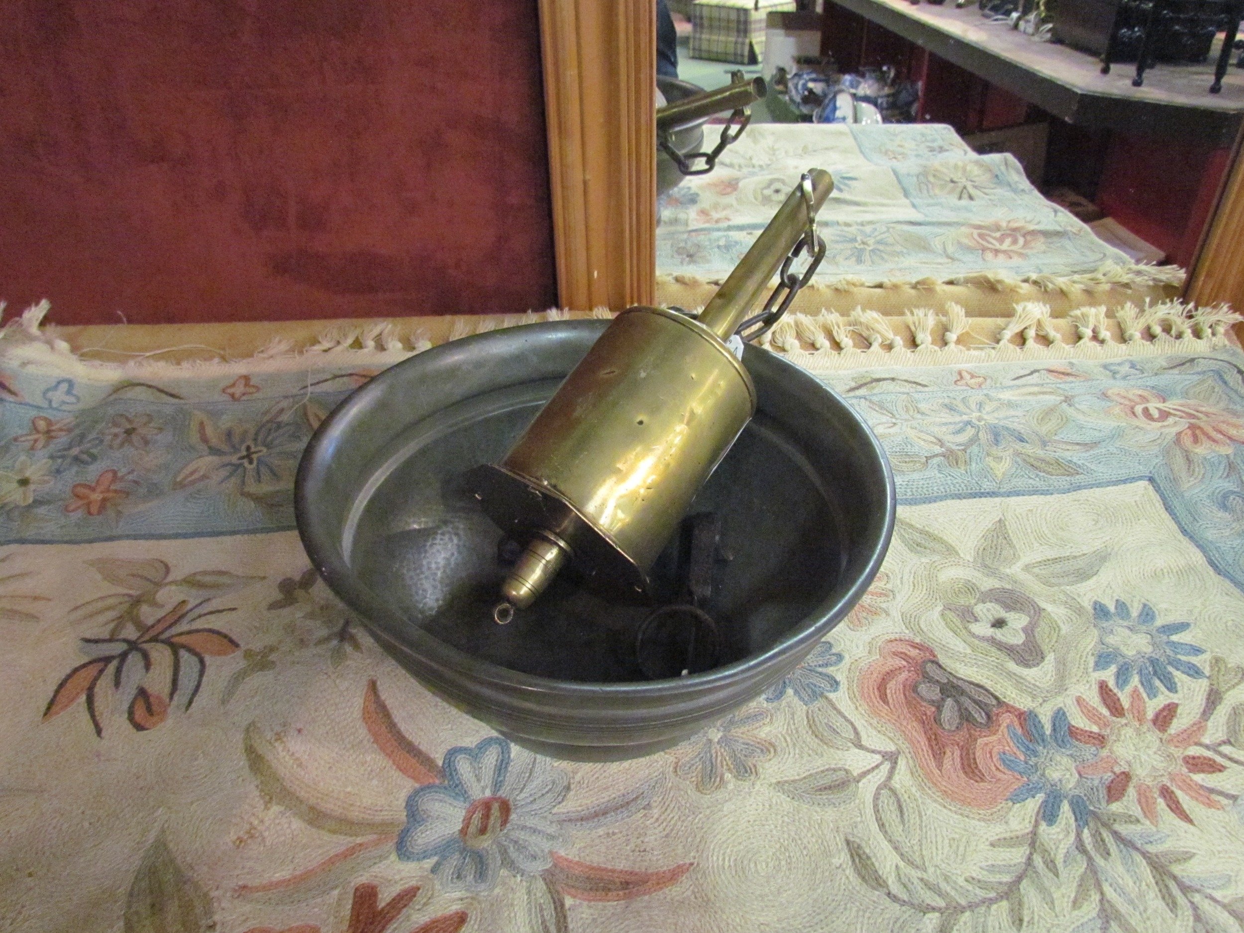 A 19th Century brass clockwork spit together with a Unity pewter footed bowl (2)