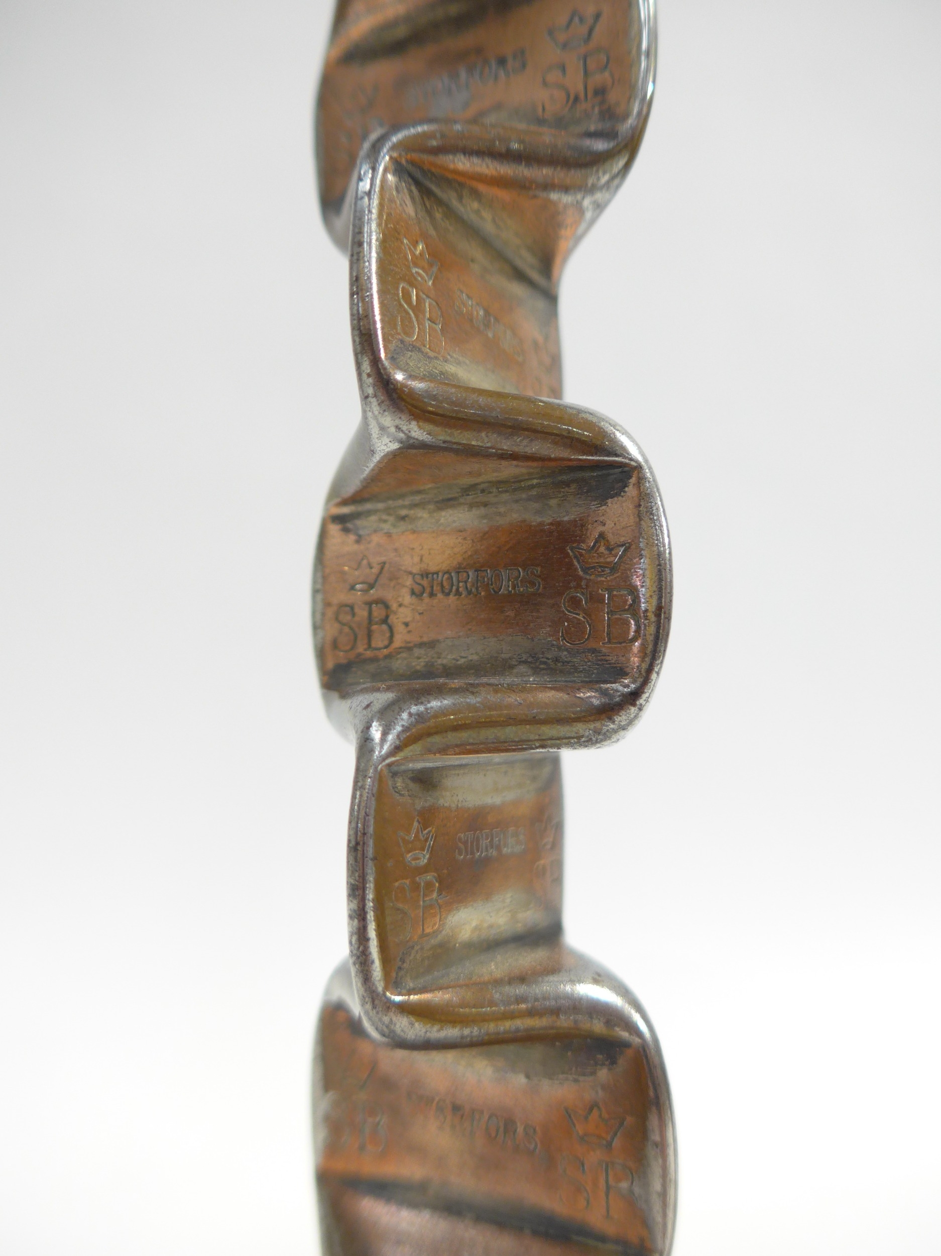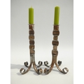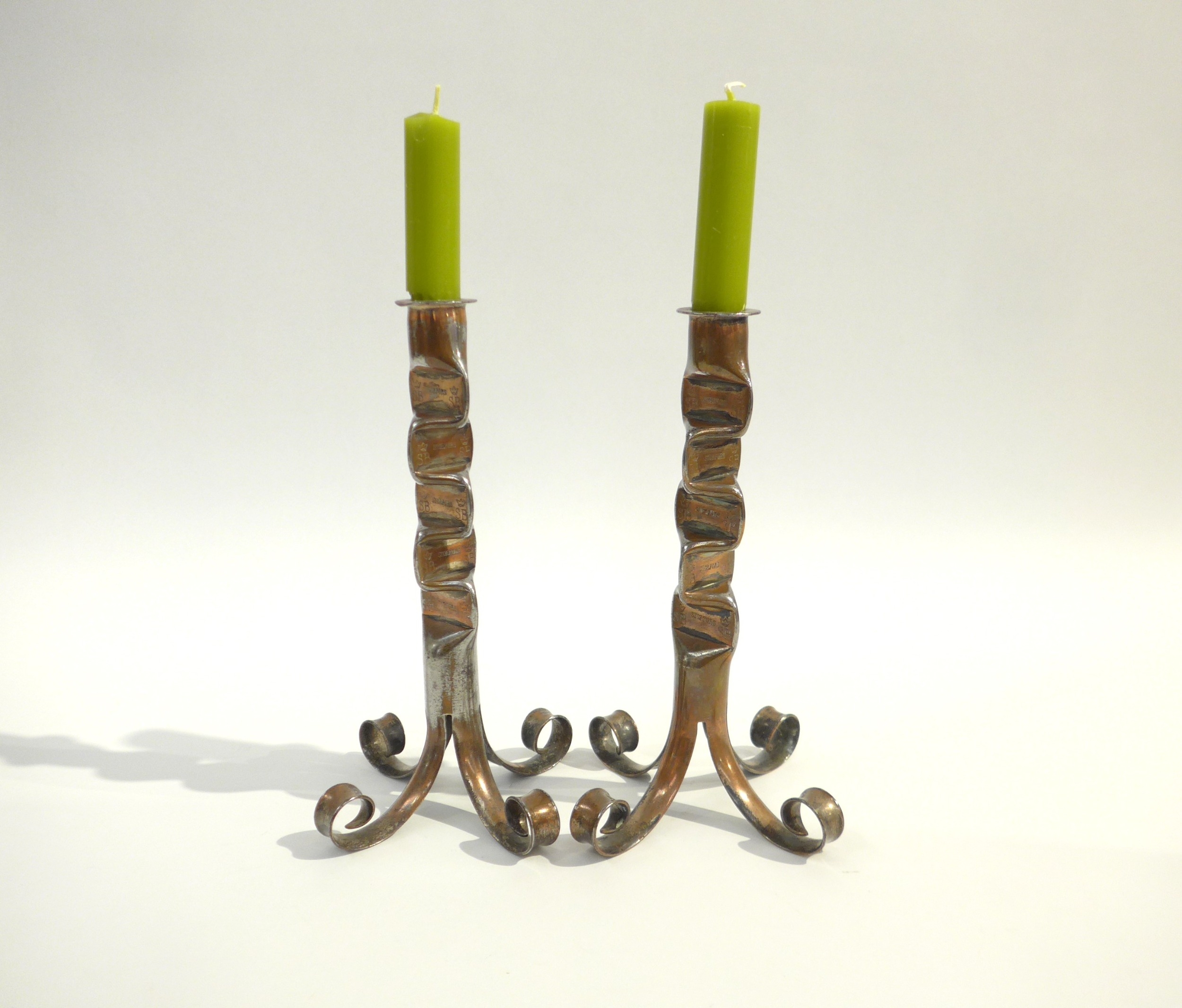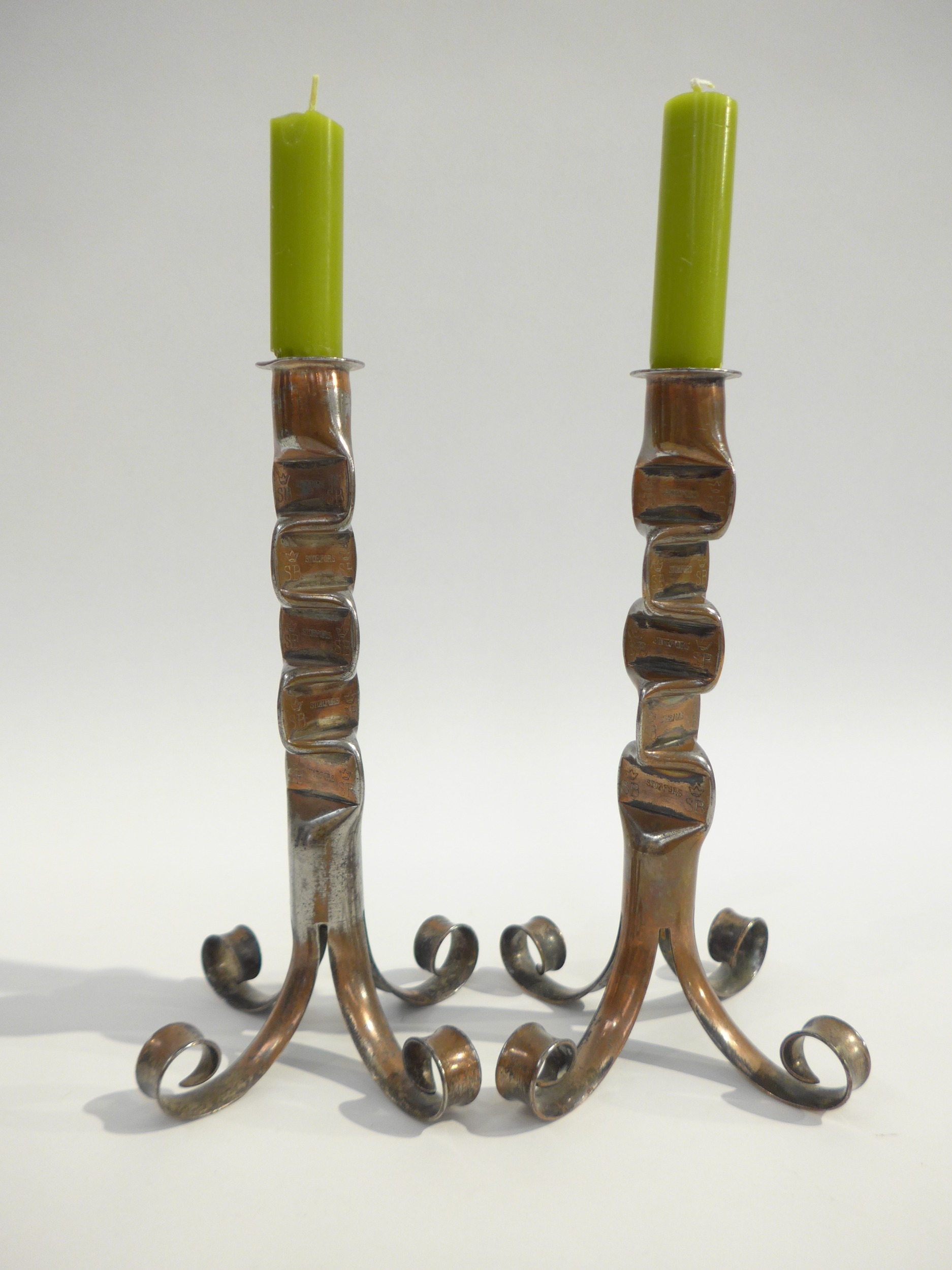 Skultuna Bruk, Sweden. A pair of copper plated modernist candlesticks. Marked on the stems with a crown over the initials S B. 23,5cm high