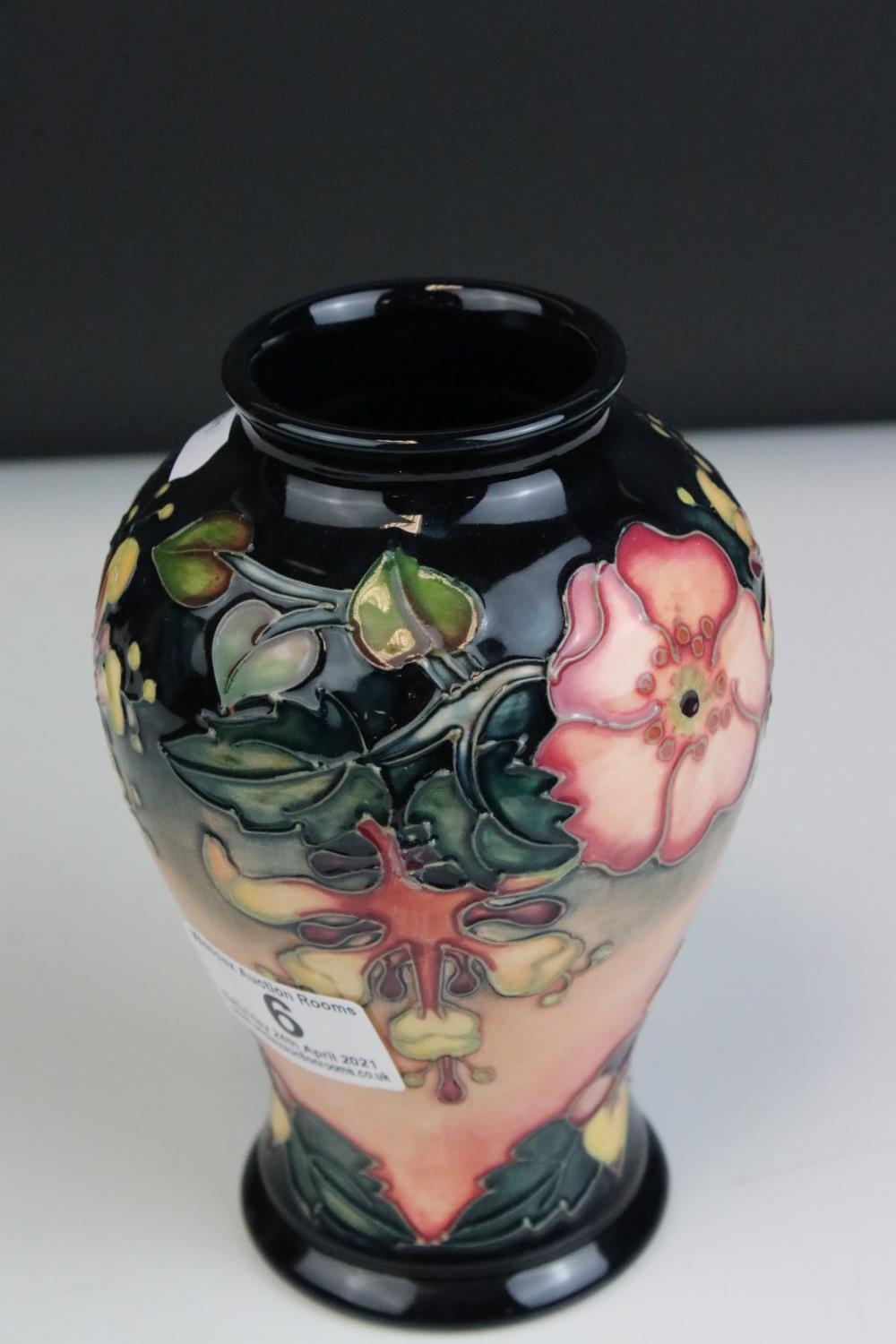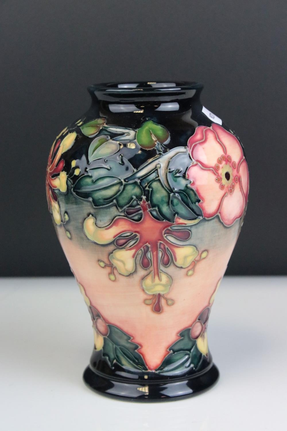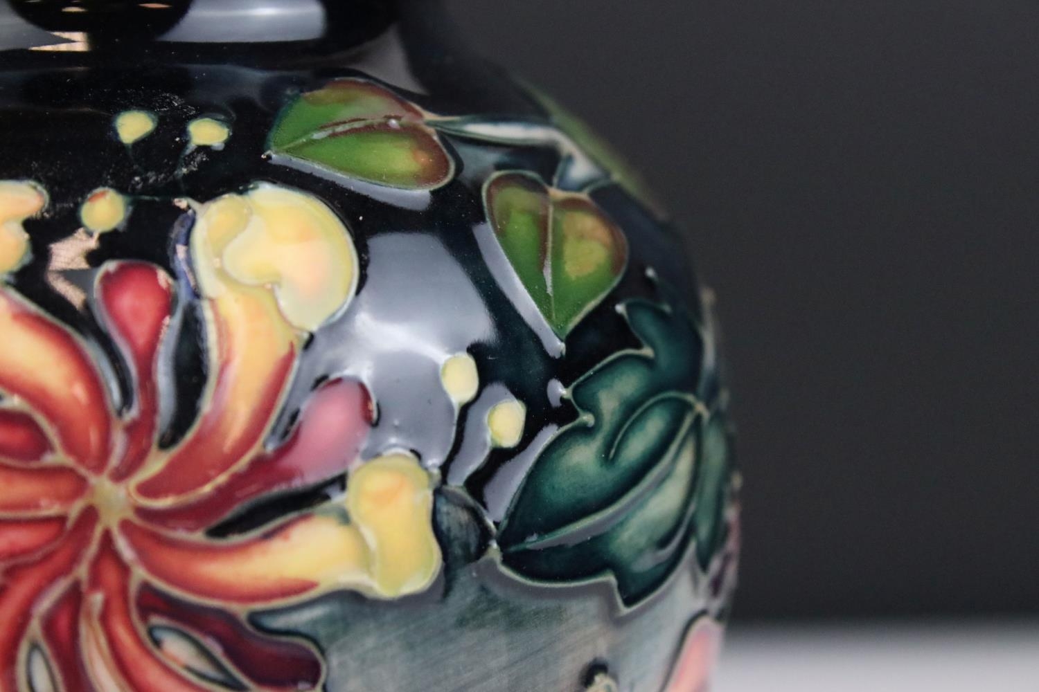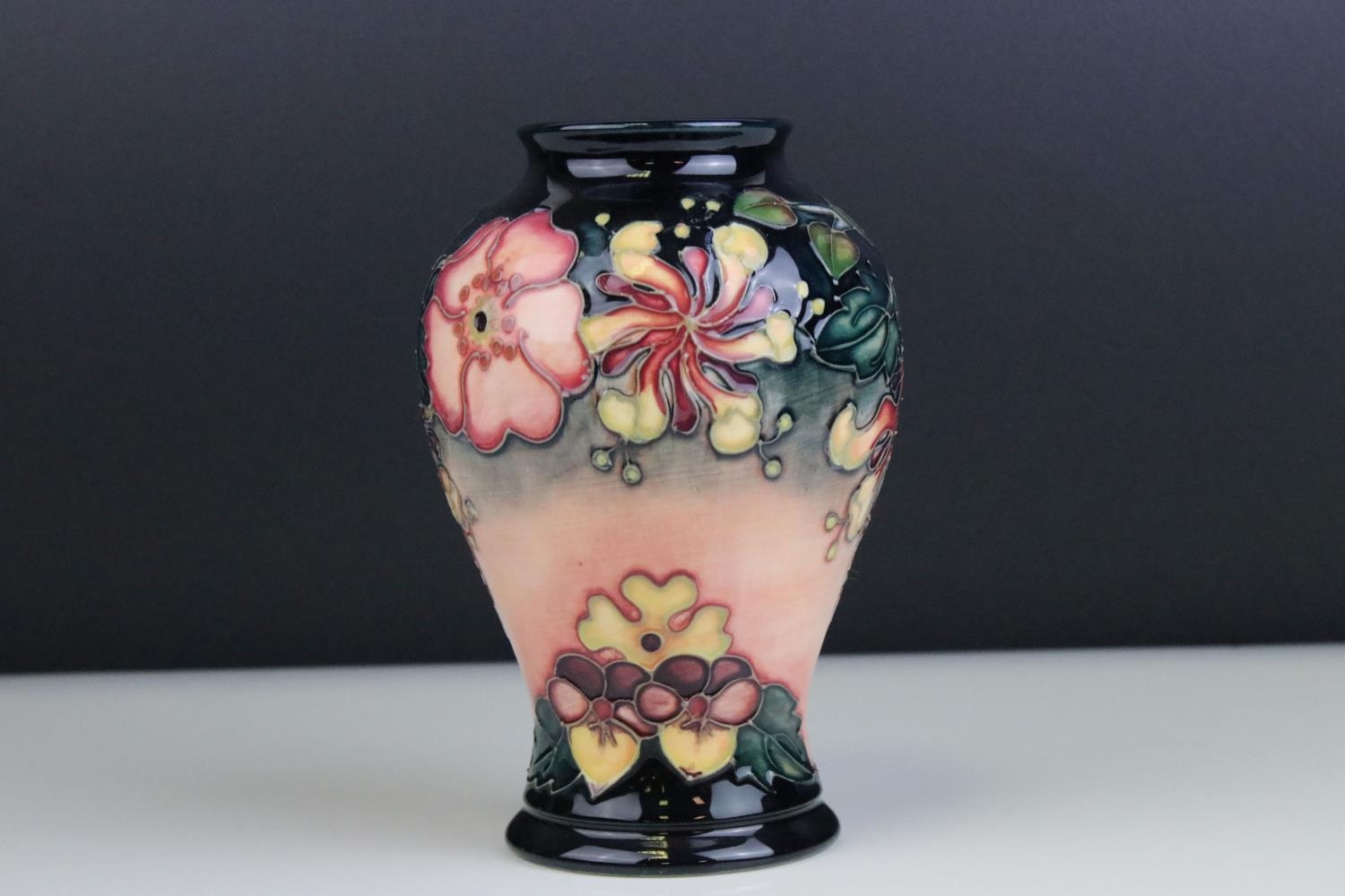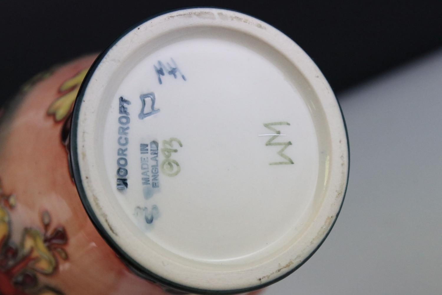 Moorcroft Tube Lined Vase in the Oberon pattern, impressed blue marks to base and initialed WM, 16cms high