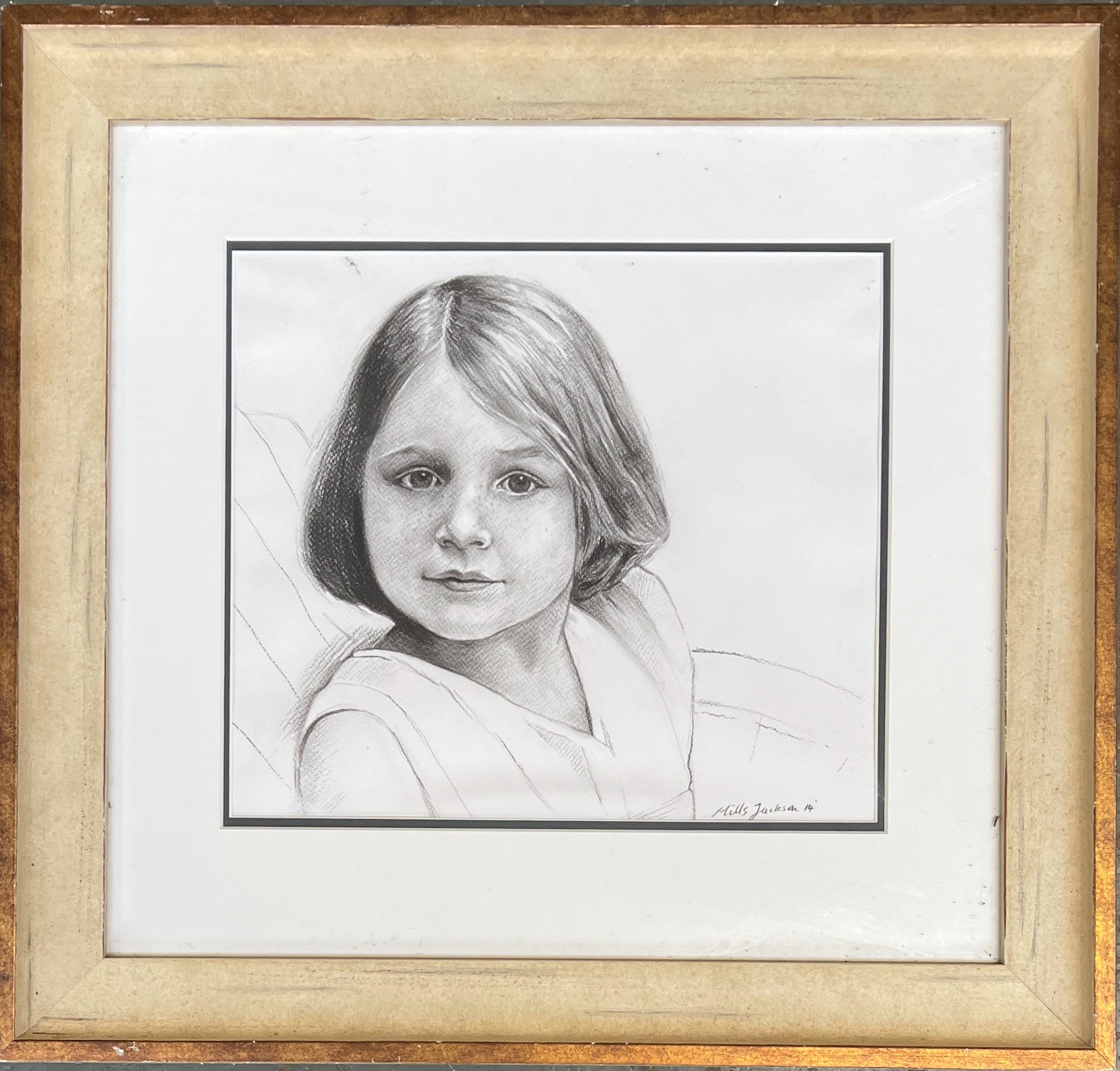 Mills Jackson, 'Lily', charcoal on paper, signed and dated '14, 29x33cm