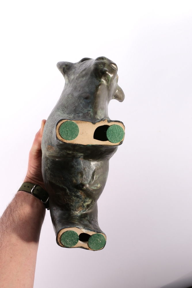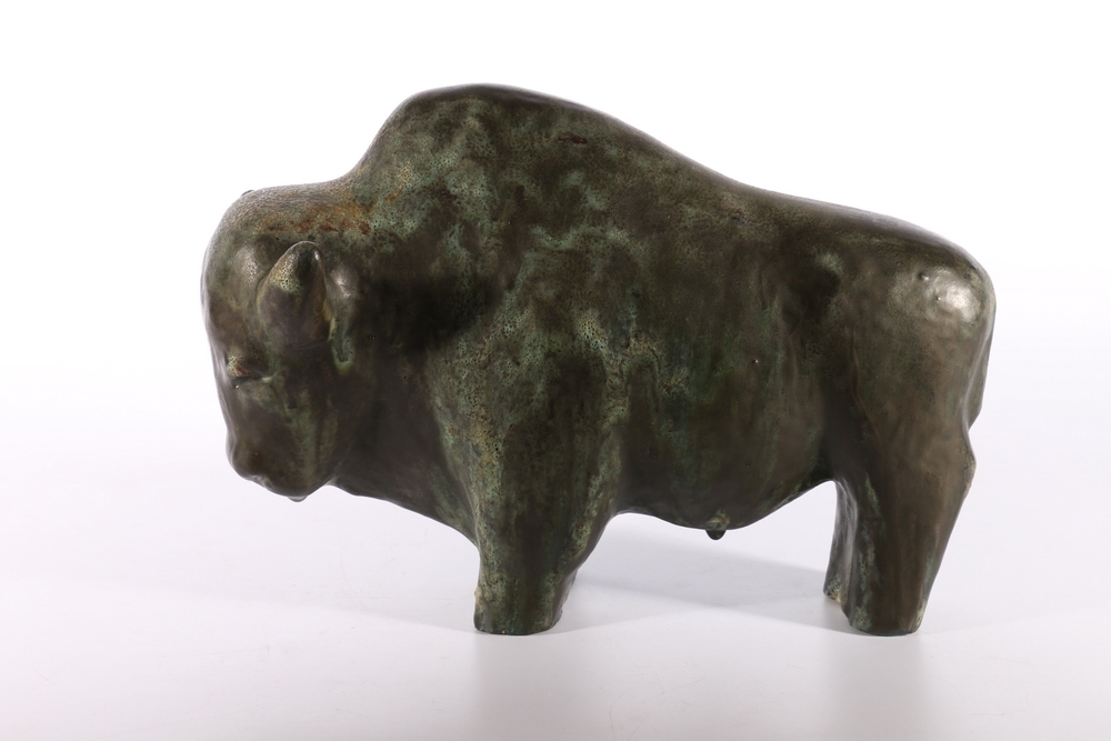 Studio Pottery model of a bison or bull, unsigned but in the Otto Keramik West German Ruscha pottery (Otto Gerharz and Kurt Tschörner) fat lava style, 33cm long.