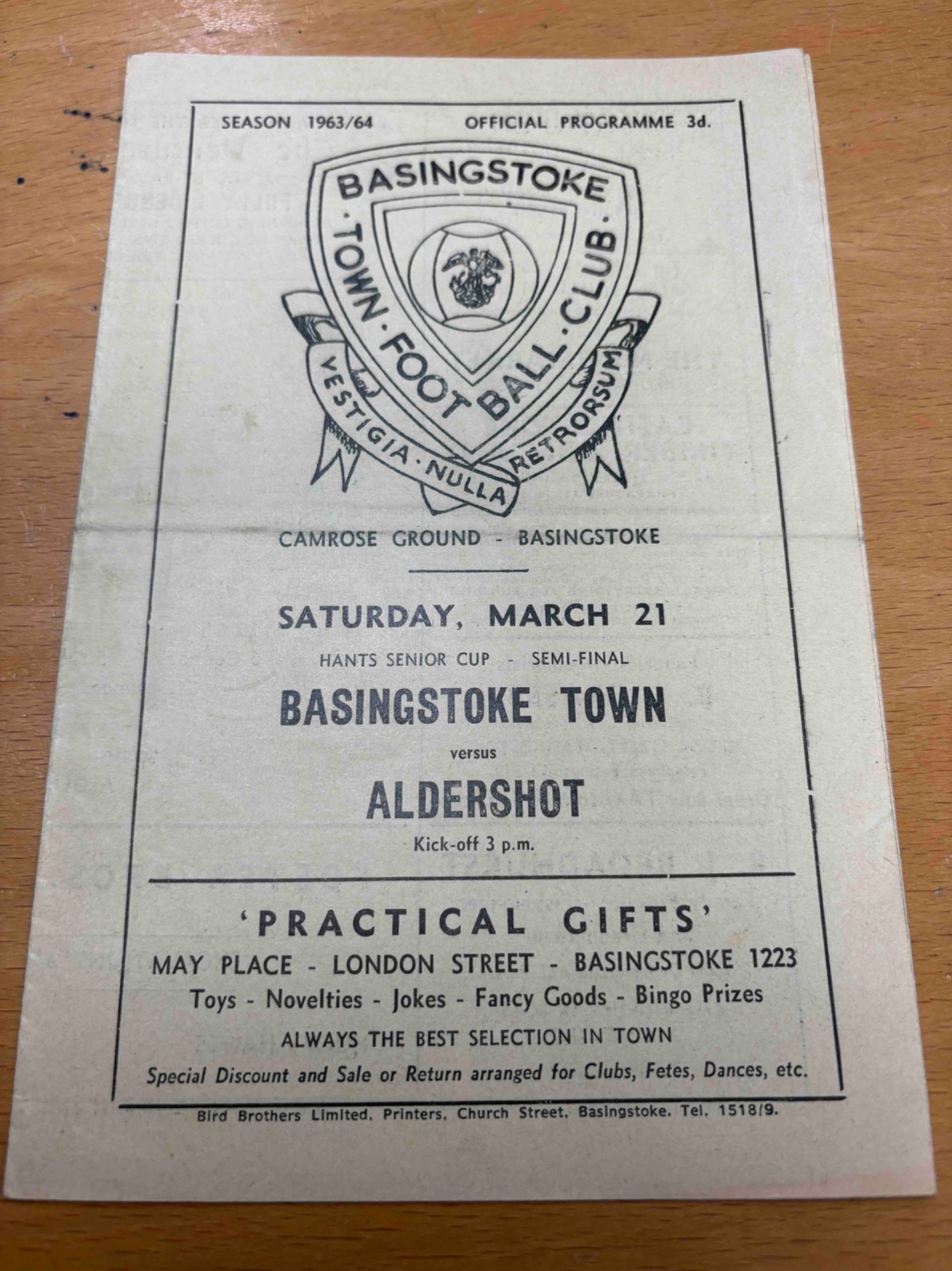 1963/64 Basingstoke v Aldershot, Hants Senior Cup S/F.
