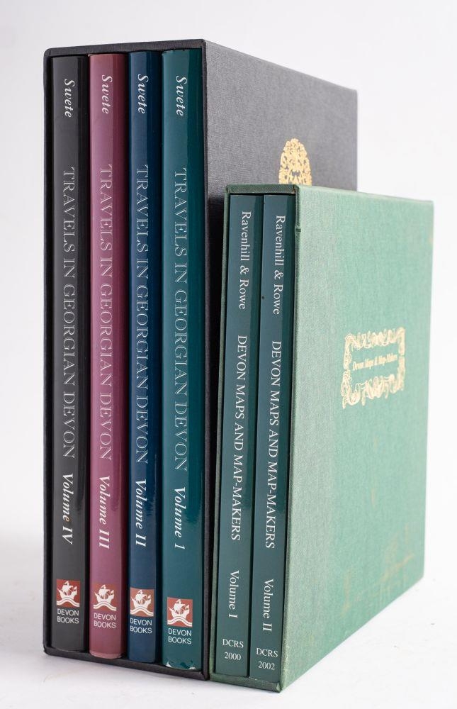 GRAY, Todd & ROWE, Margery - (editors) Travels in Georgian Devon : The Illustrated Journals of the Reverend John Swete, 1789-1800. 4 vols, copiously illustrated in colour, org. cloth in slipcase, folio, Devon Books, 1997-2000. * each volume has a limitation label which signed by both editors, and limited to 1000 copies. With - Ravenhill & Rowe, Devon Maps and Map-Makers, 2 vols * all in fine condition (6)