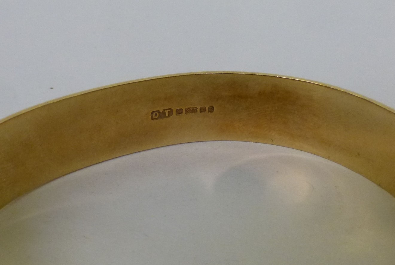 A 9ct gold hinged bangle (approx. 23.7grms)