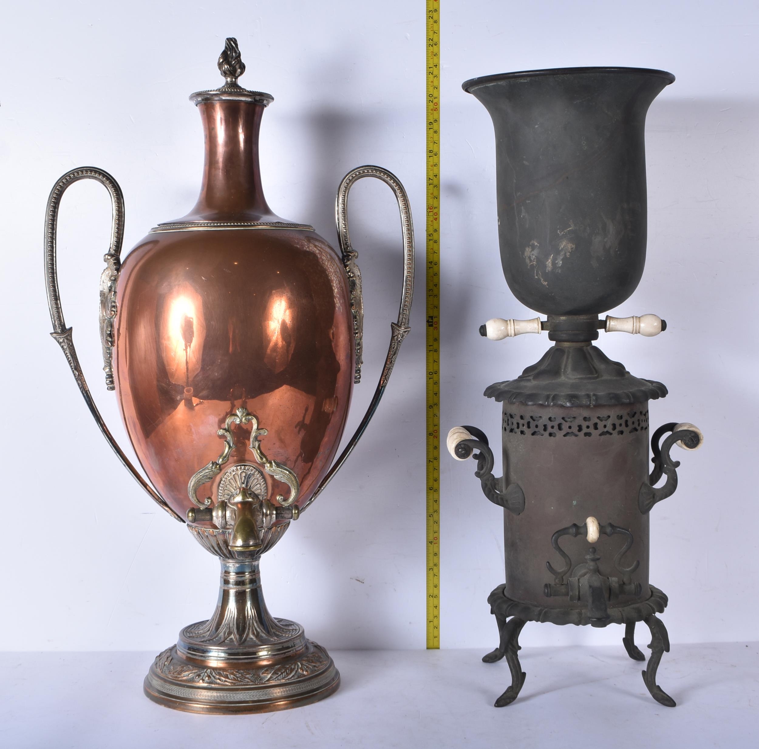 A large copper and brass Samovar together with another vintage Samovar 55cm (2)