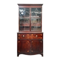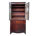 A George III secretaire bookcase. The upper part with two glazed doors, the lower part with a fitted drop front drawer above a pair of cupboard doors, height 228cm, width 110cm, depth 56cm.