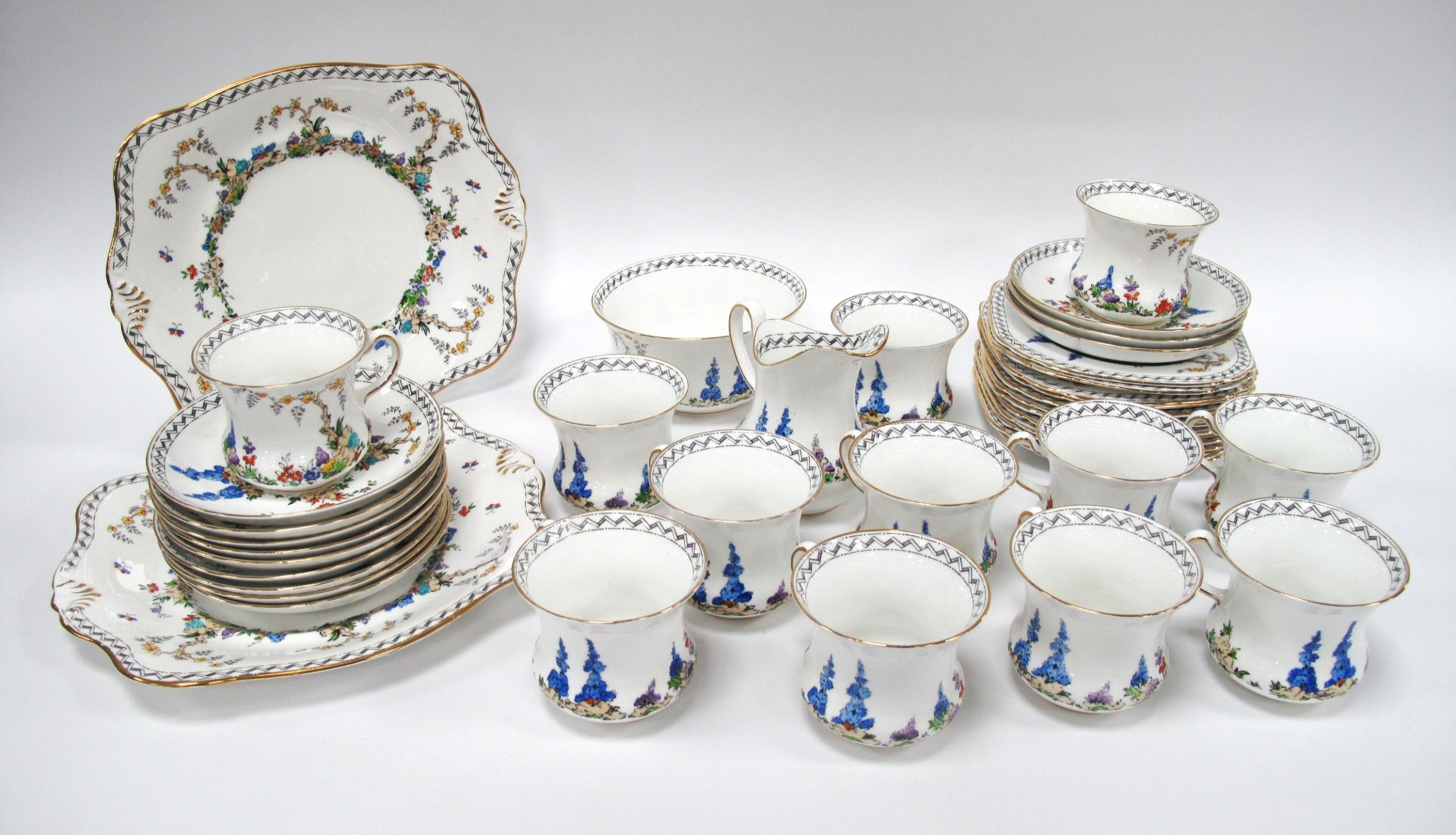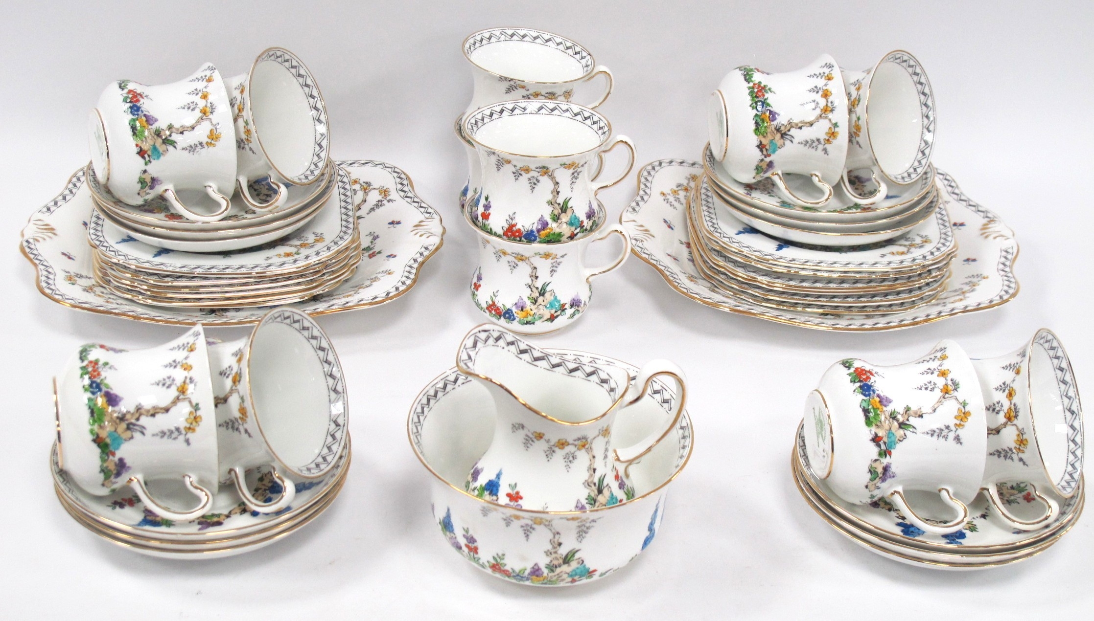 Tuscan China Tea Ware Circa 1920s, with multicoloured floral decoration, forty-pieces.