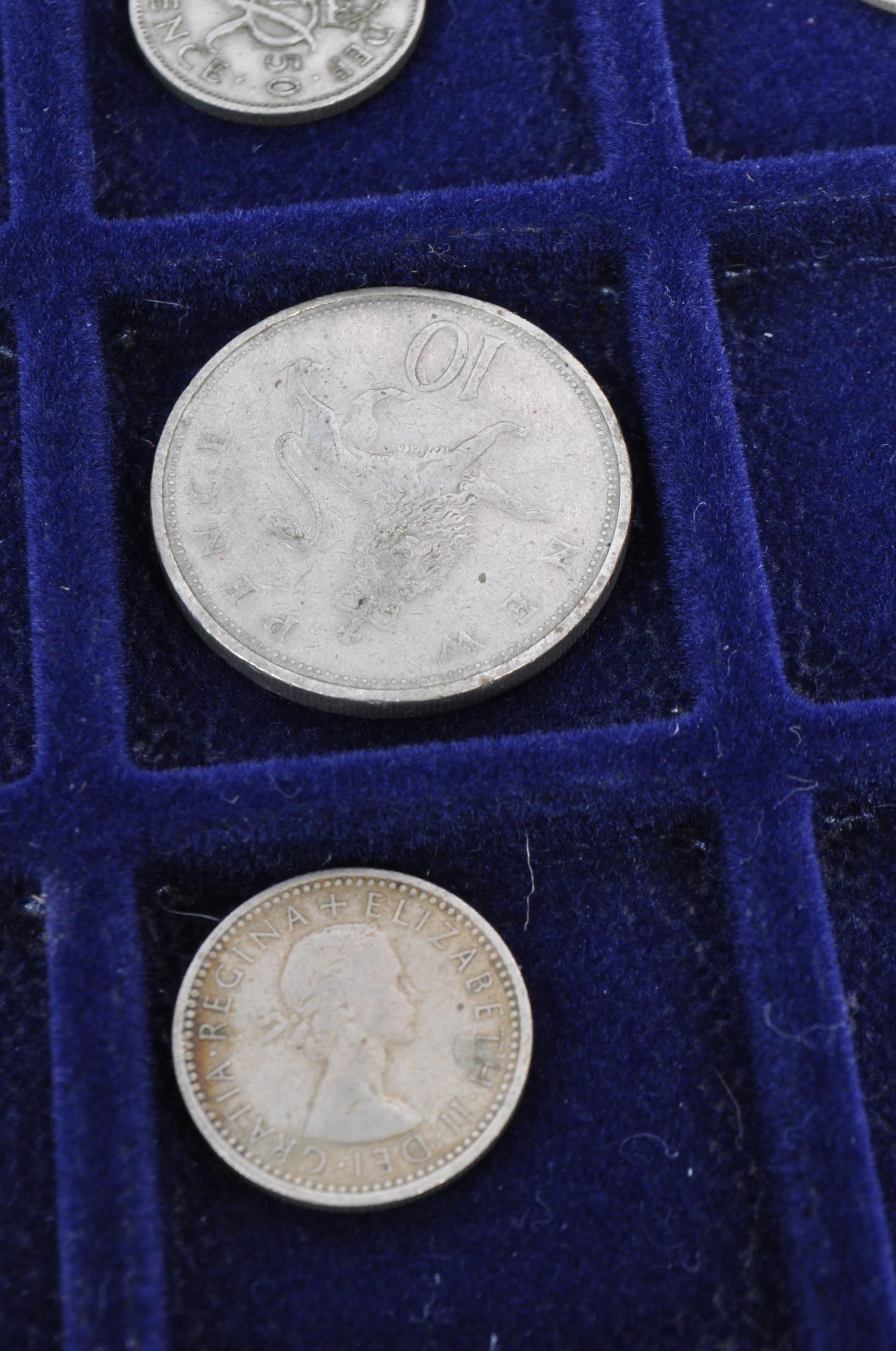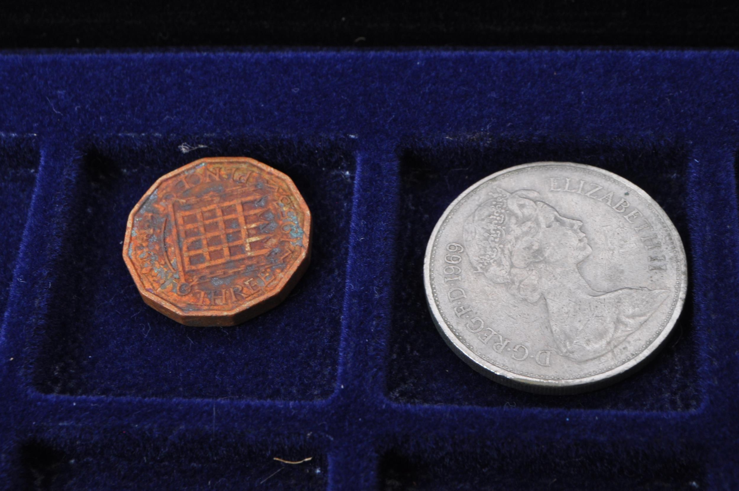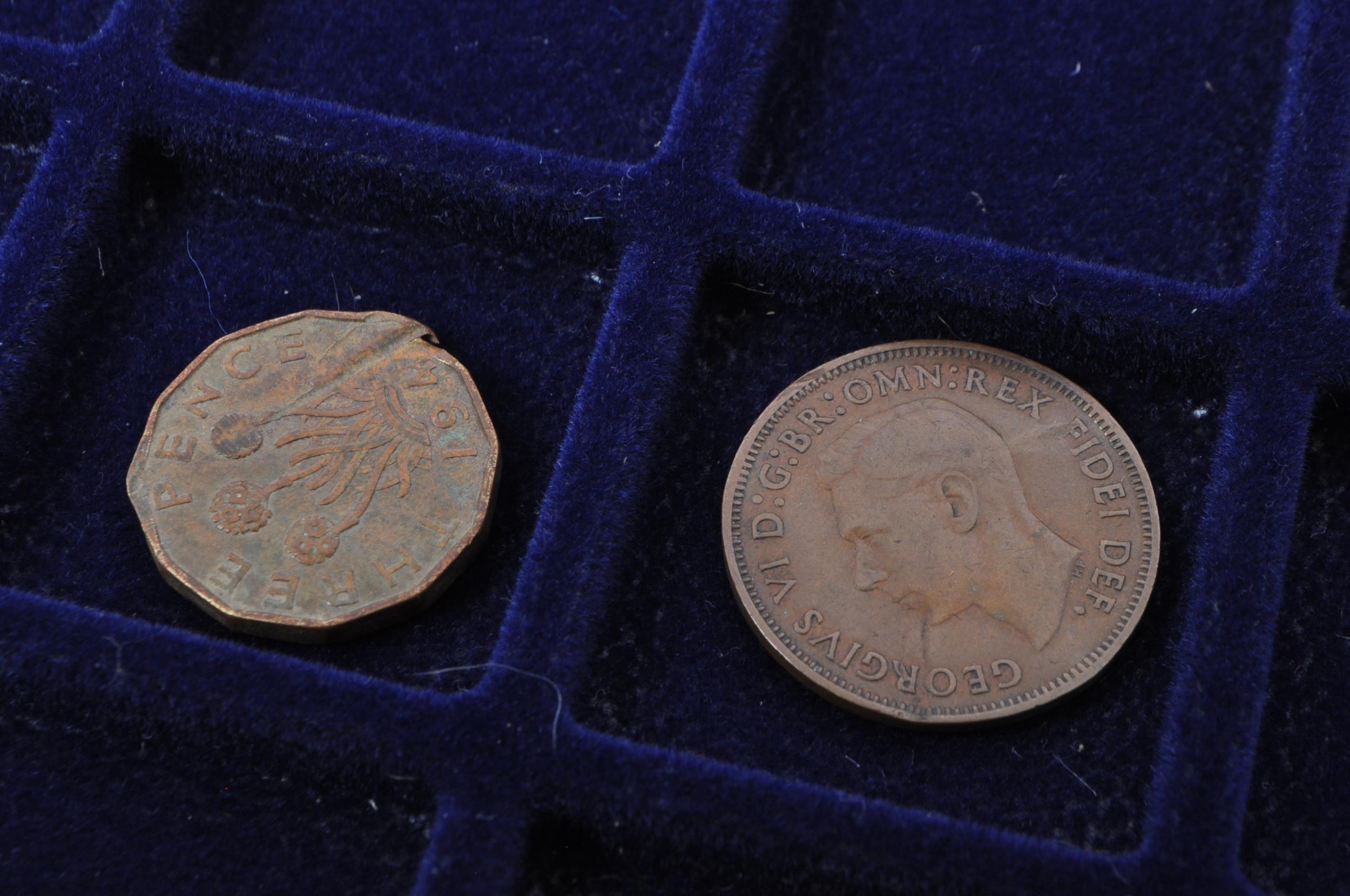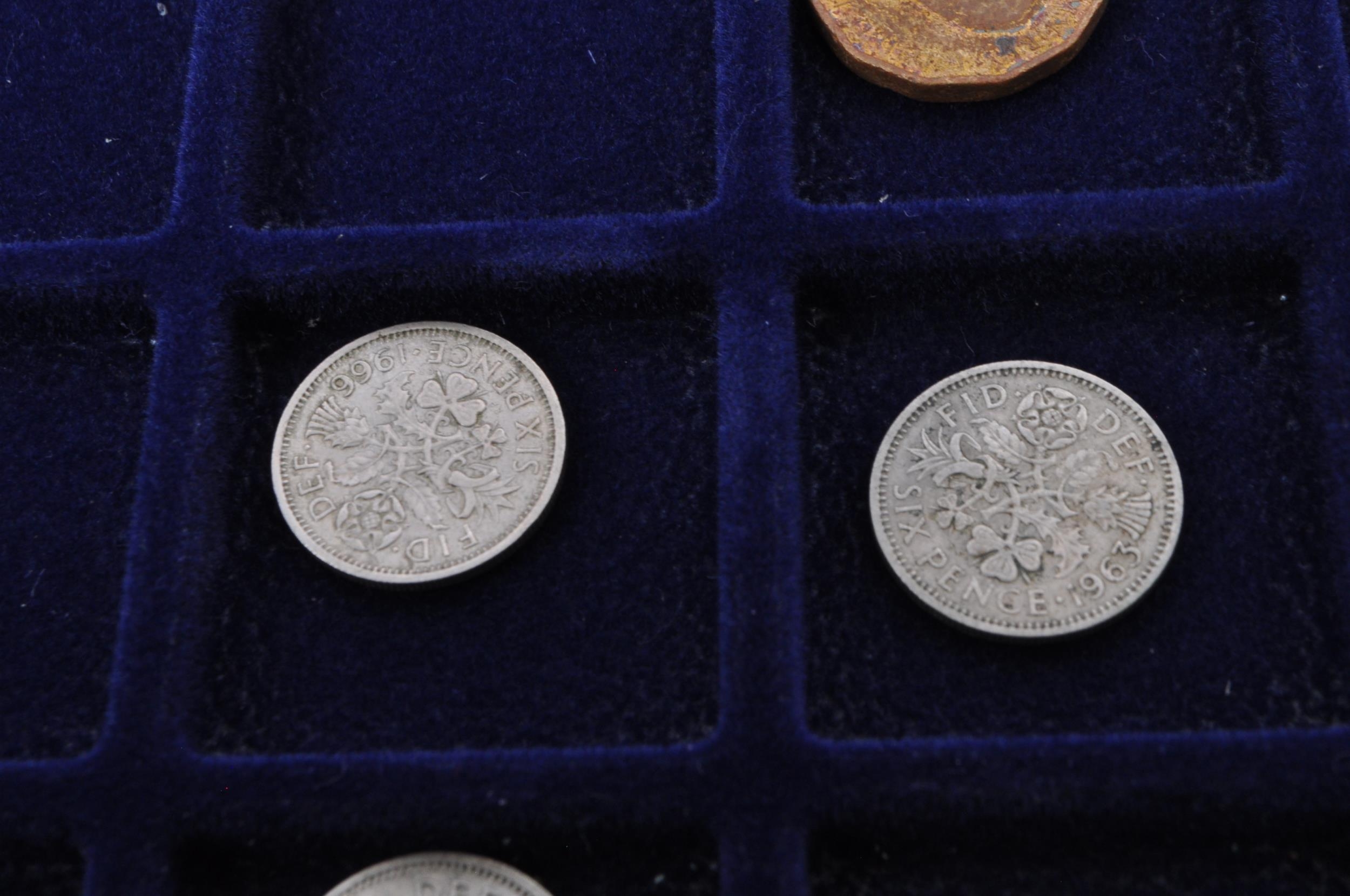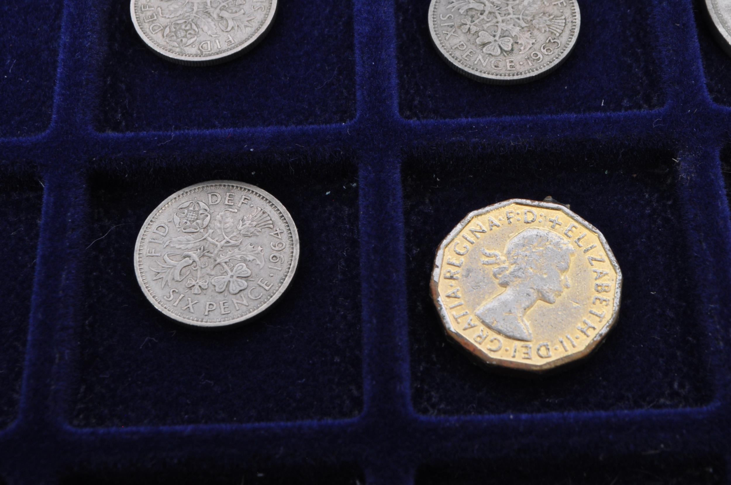 A collection of mid 20th century uncirculated pre decimalisation UK coin currency. Most threepence pieces. (117). Some George V sixpence pieces. In a metal carry case.