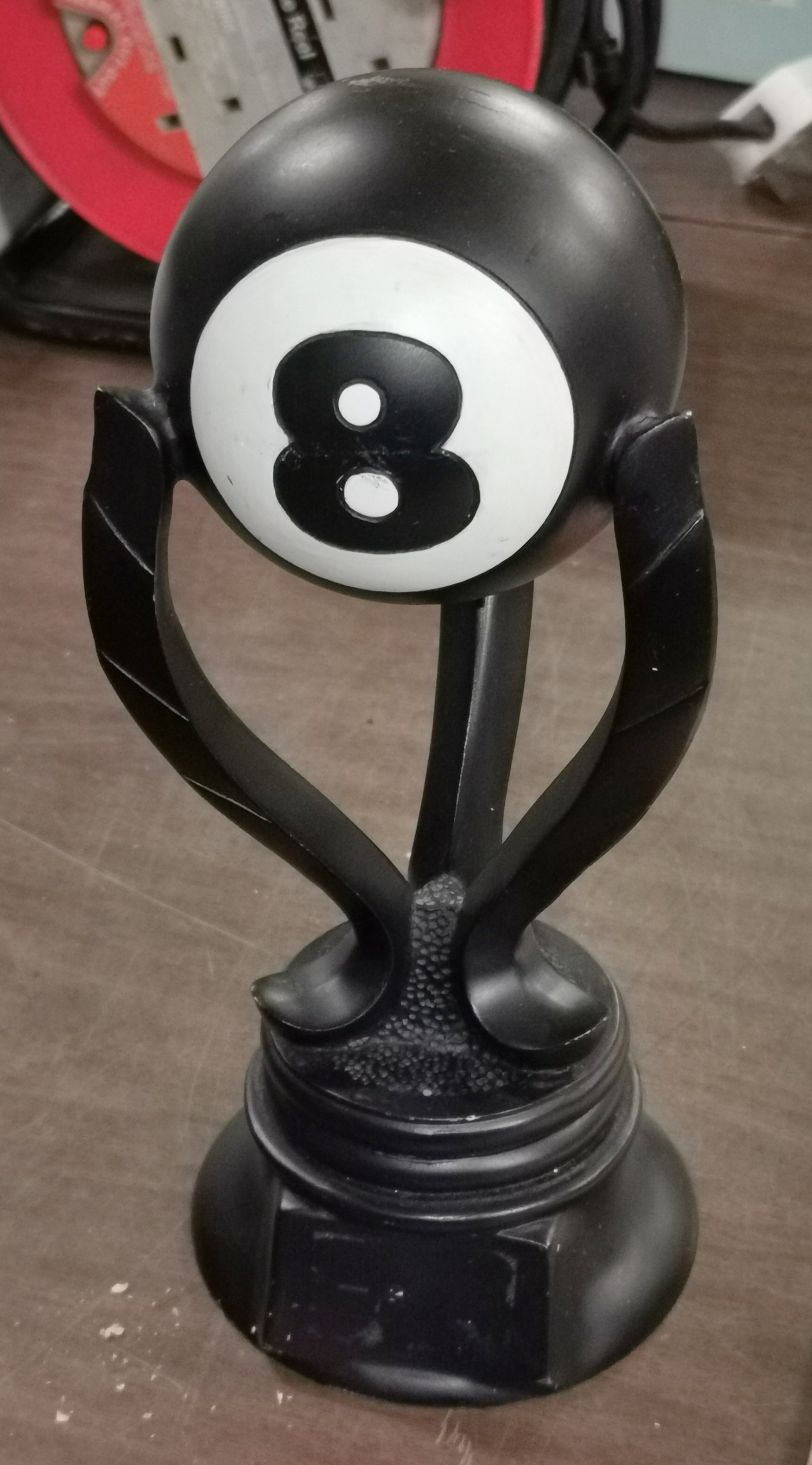 26 cm tall composite no' 8 pool ball sculpture/trophy - small nick on rear